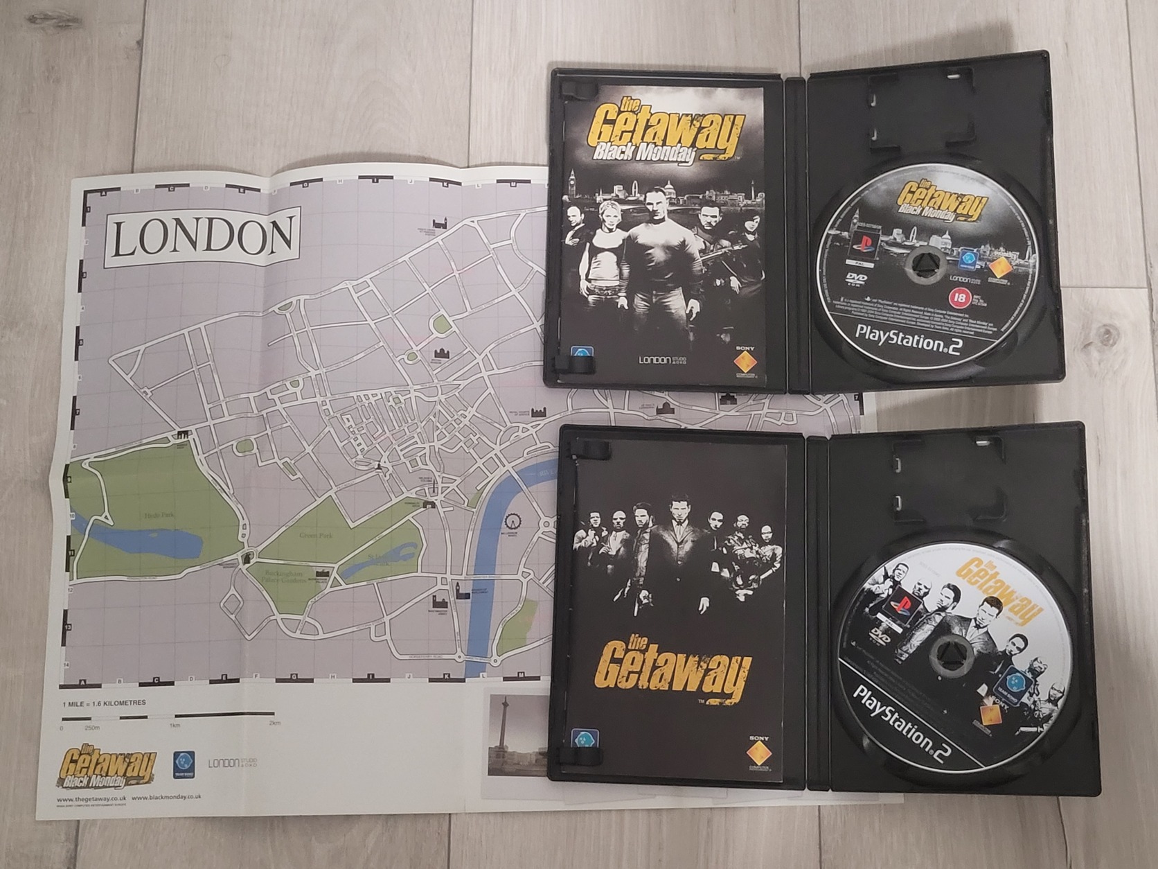 The Getaway és The Getaway Black Monday Playstation 2 játékok. Mindkettő PAL, angol nyelvű lemez és borító. Manual van mindkettőnél + Black Monday London térképe és posztere.
