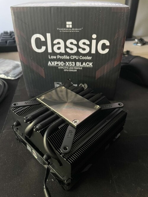Eladó újszerű, hibátlan Thermalright AXP90-X53 BLACK alacsony profilú CPU-hűtő, minden tartozékával, dobozában.