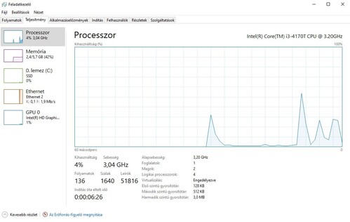 Processor: Core i3-4170T, 2 mag, 4 szál, 3.2ghz