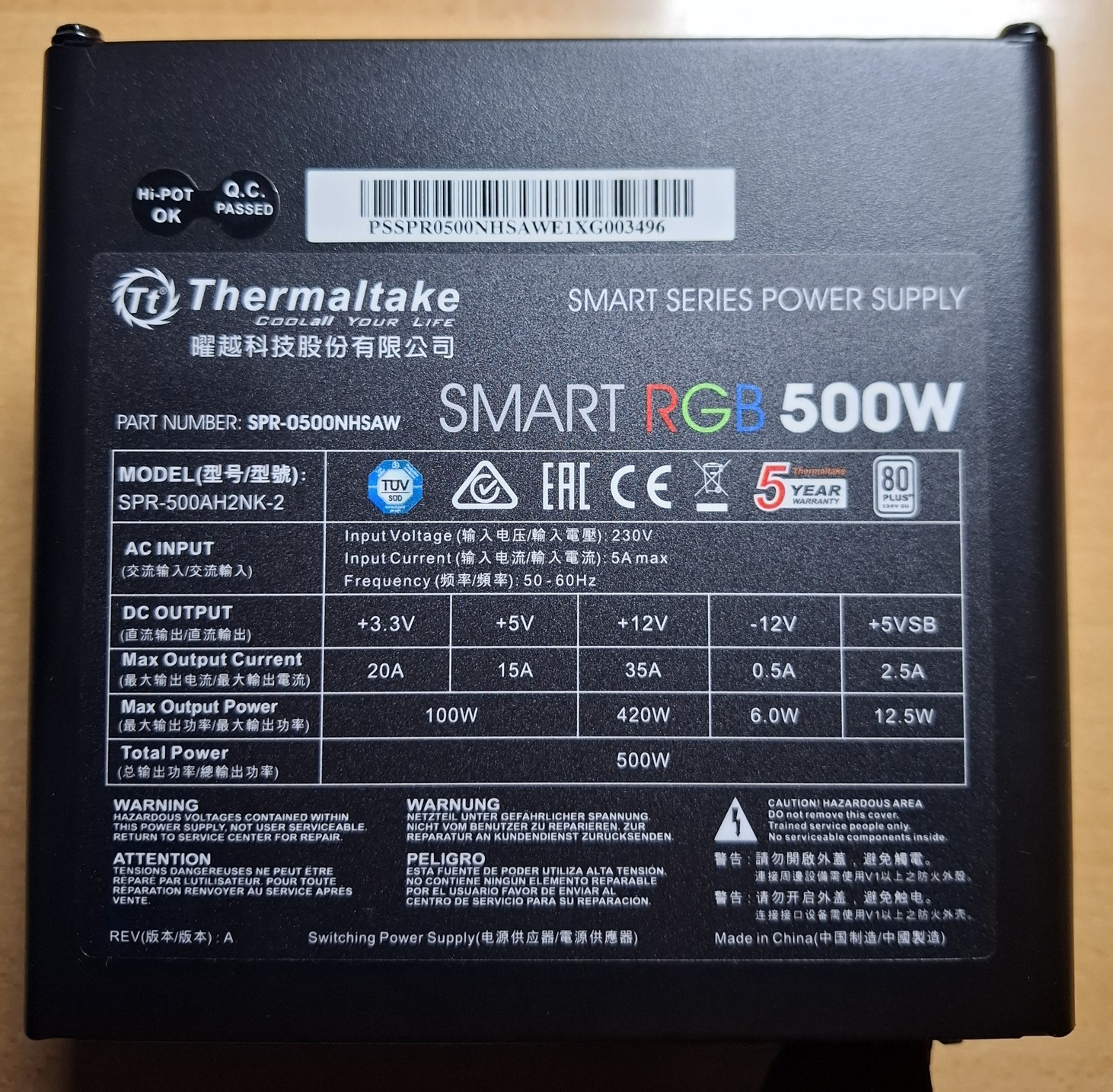 Eladásra kínálom Thermaltake SMART RGB 500W tápegységemet.