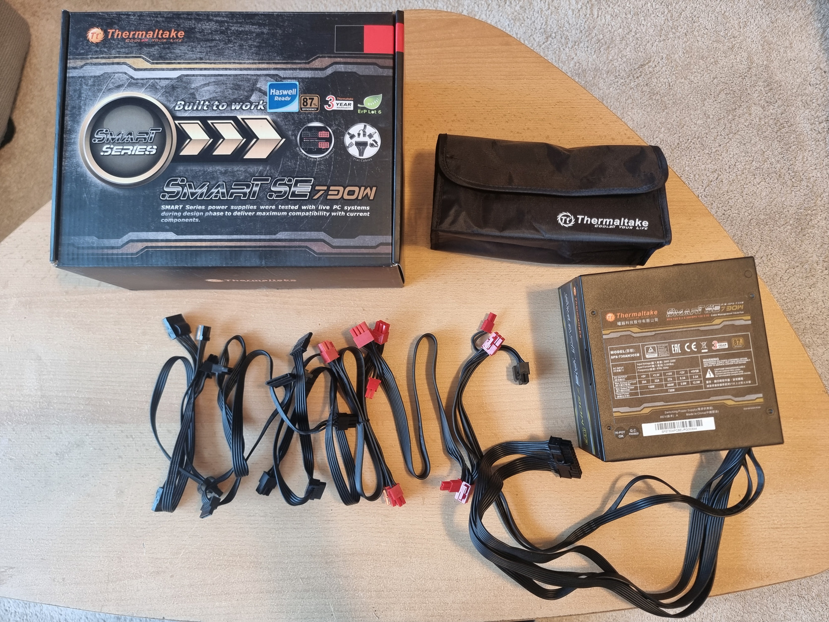 Eladó a képeken látható Thermaltake Smart SE 730 wattos, 80 plus Bronze minősítésű félmoduláris tápegységem. Eladás oka a 12VHPWR hiánya (korából adódóan), illetve hogy "csak" bronzos minősítésű.
