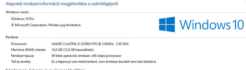 oprendszer: win 10
