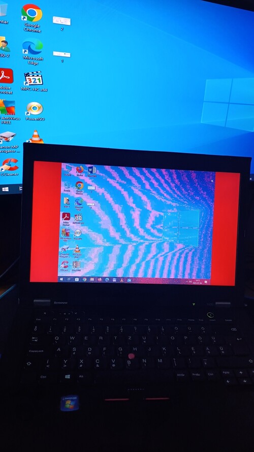A kijelzővel problémák vannak, ilyen fantasztikusan szép piros. Külső kijelzőre kötve jó képet ad ott nem hiányoznak a színek.