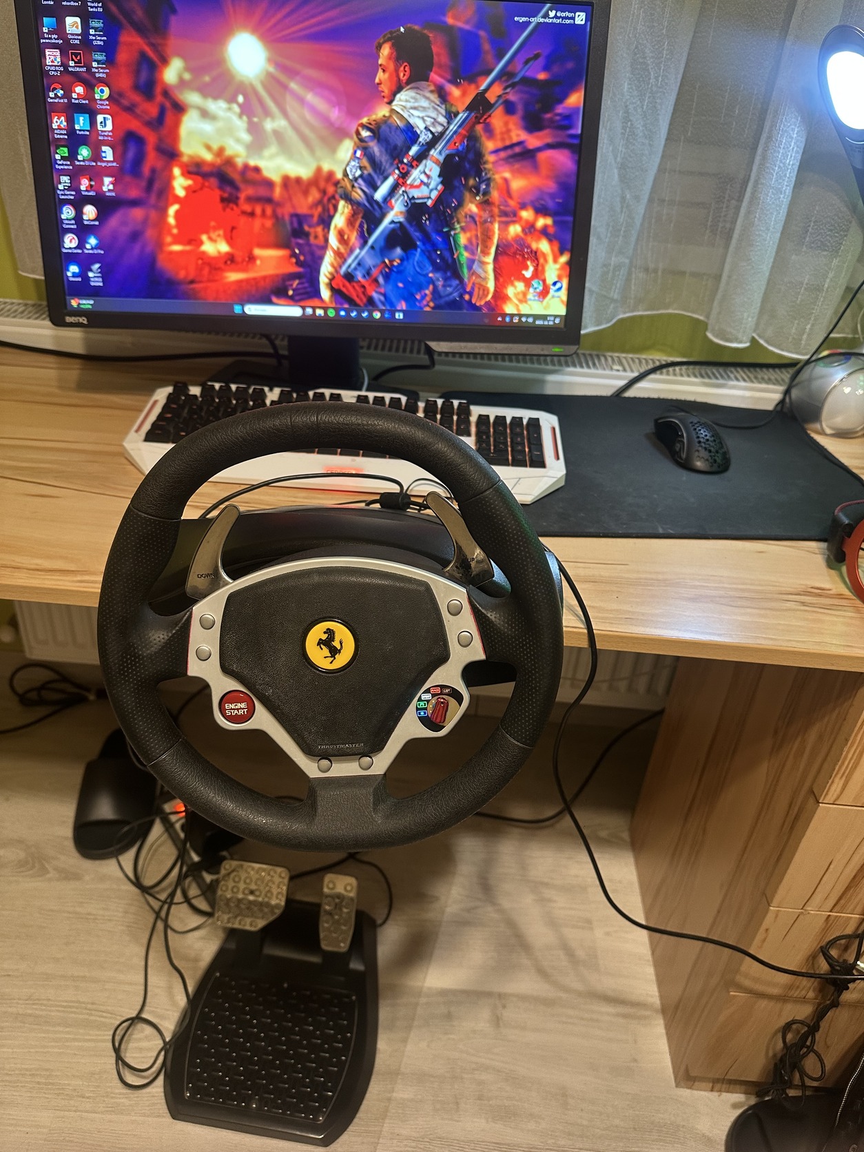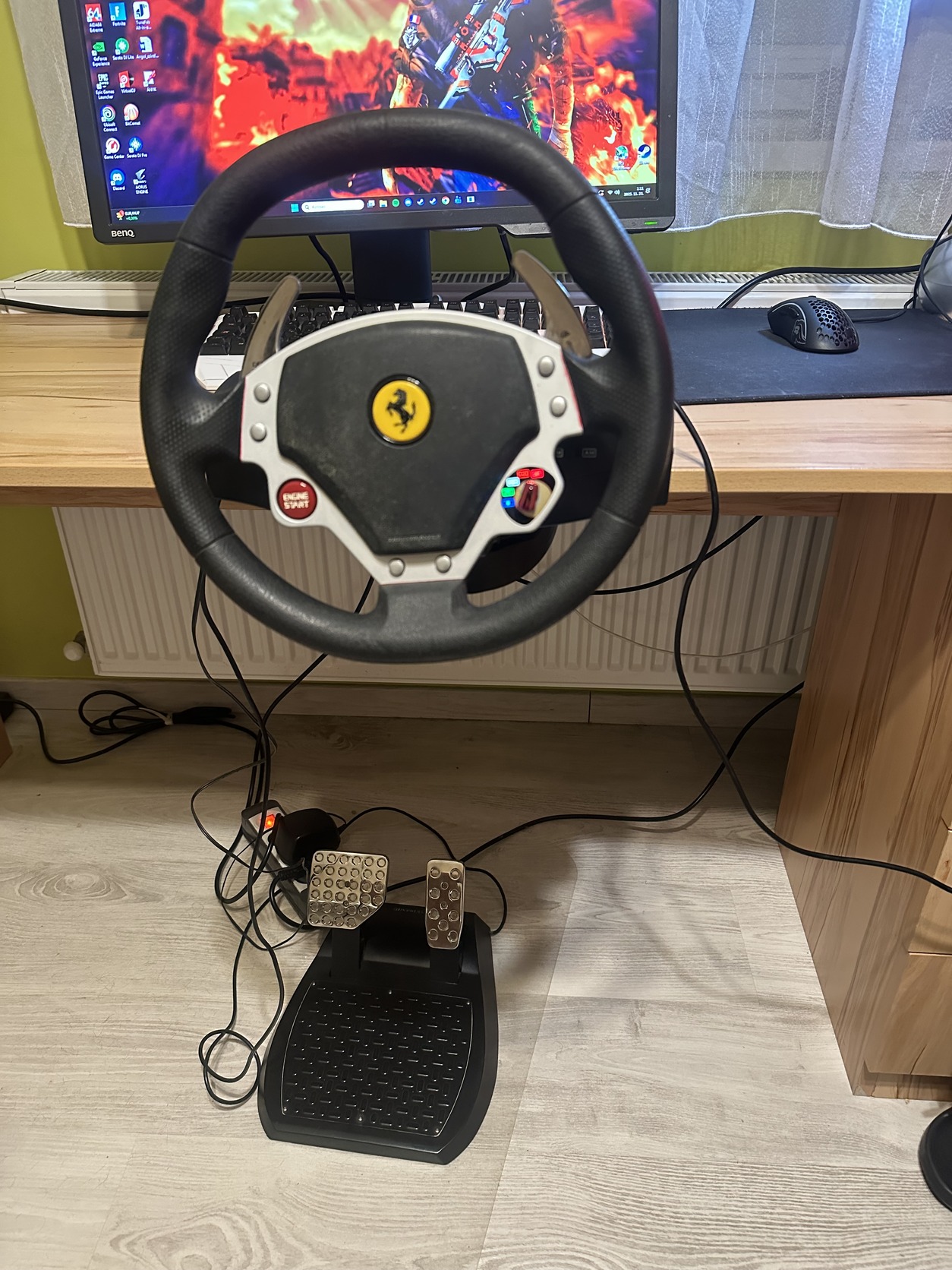 A címben említett kormány - pedál szettel együtt eladó, hibátlanul működik, kisebb kopások láthatóak rajta de azon kívűl semmi baja.A kormány force feedbackes ,nem összekeverendő a rugós vackokkal.