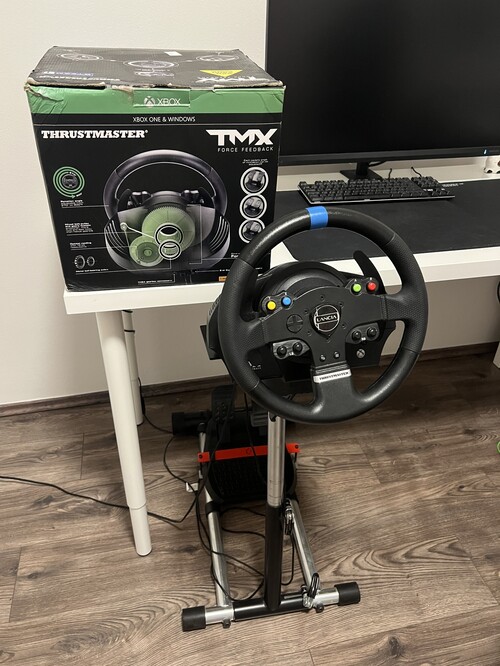 Eladó sorba került a kormányom, próbáltam rá vigyázni , újonnan vásároltam még 2016 ban, azóta is hibátlanul teszi a dolgát. Az állvány nem tartozik a szetthez, a kék matricát a kormány közepén és az emblémát utólag raktam rá, természetesen le lehet szedni. PC-én és Xbox-on is egyaránt használtam, kompatibilis mindkettővel.