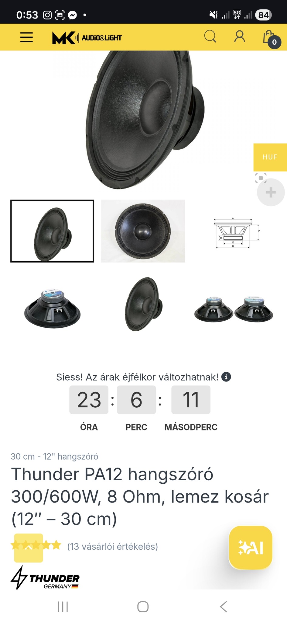 Thunder audio pa12 hangszórópár 30cm 12"