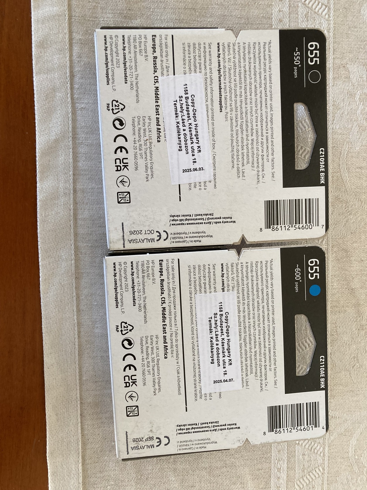 Eladó 2 db originál HP DeskJet titntapatron, egyik fekete, másik kék. Tipus 655.