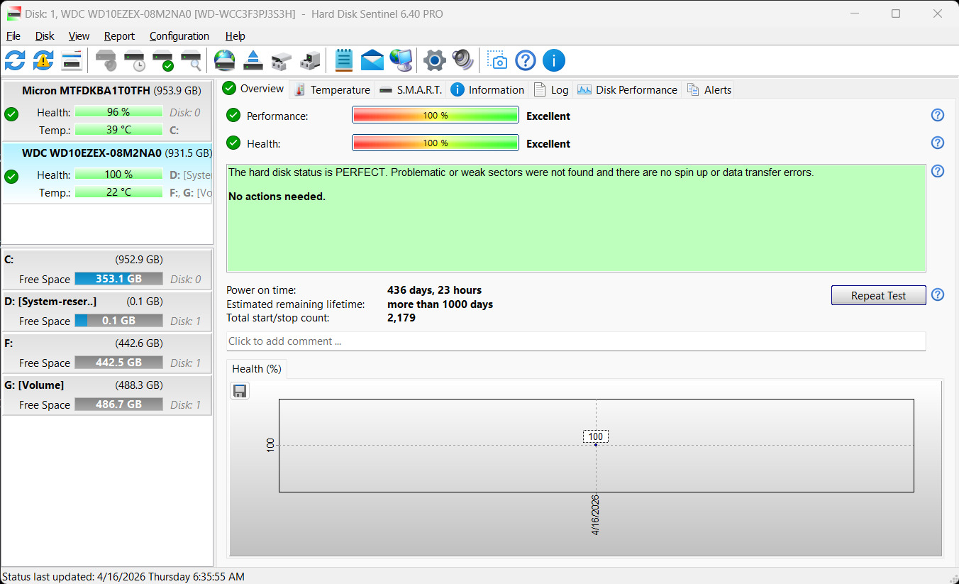 AE6 WD Blue WD10EZEX 1TB, 436 nap, 100/100 - 7000 Ft