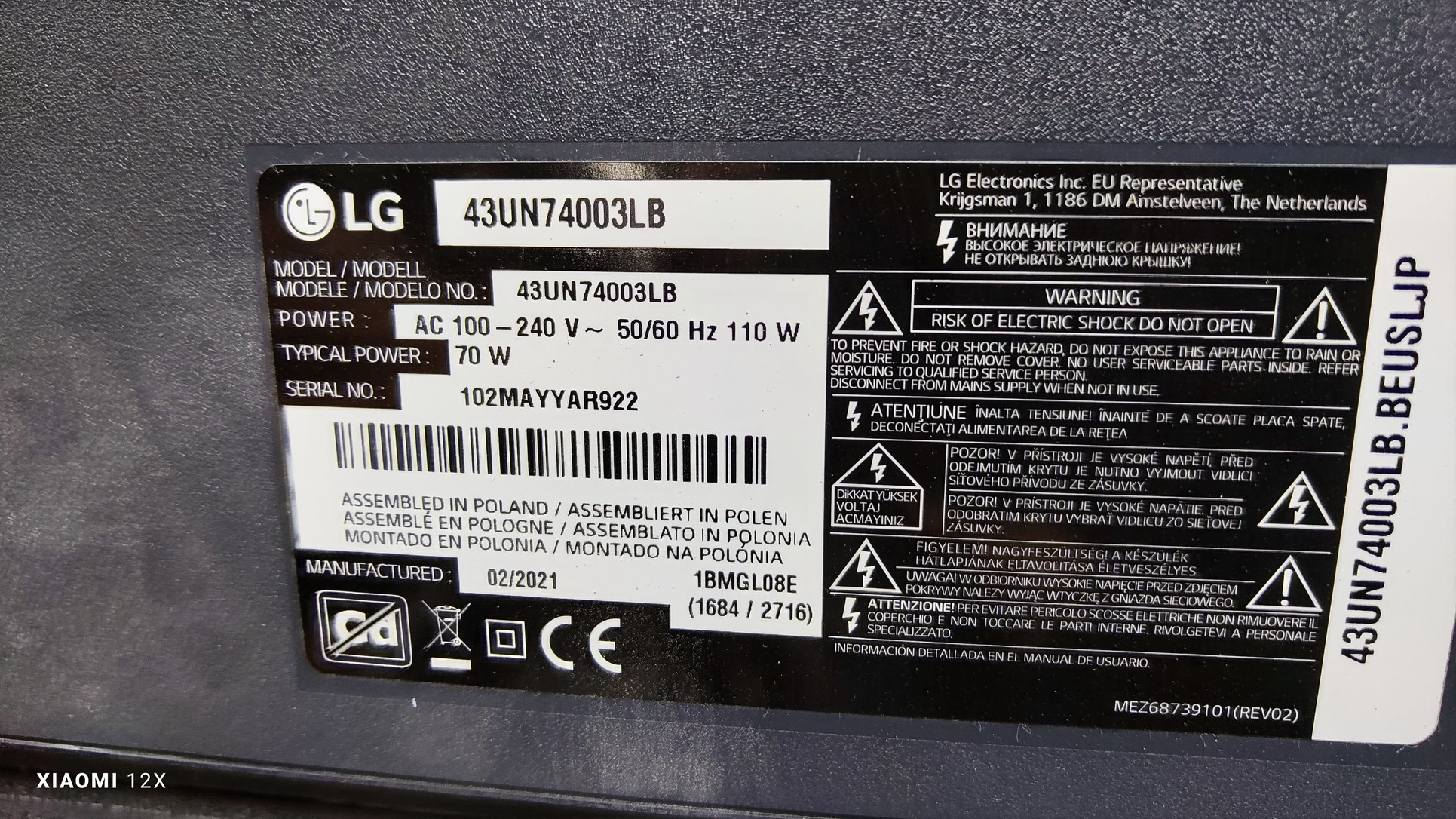 Törött LG 43UN74003LB smart 4k tv