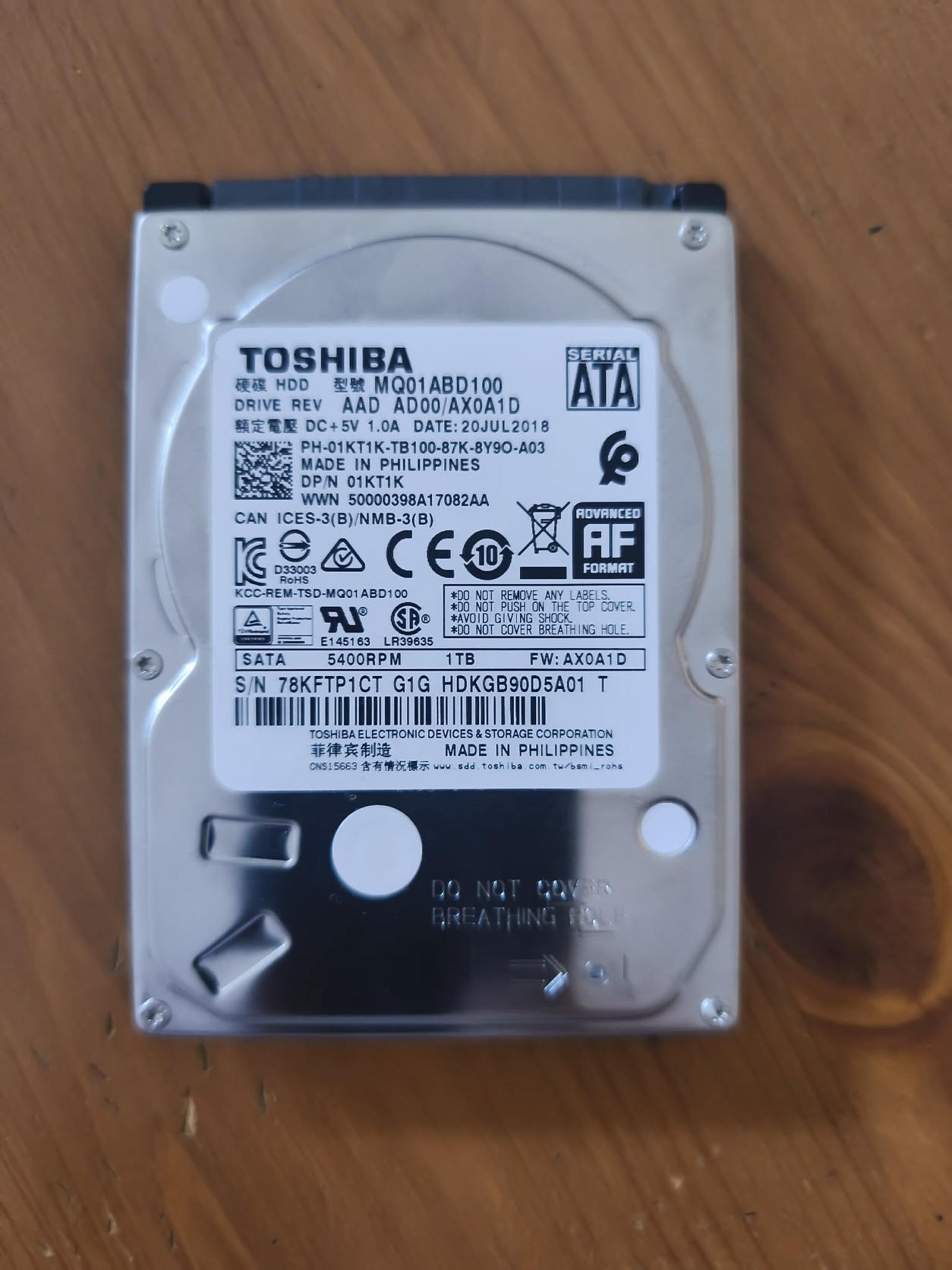 Toshiba 1 TB HDD 2.5 100/100