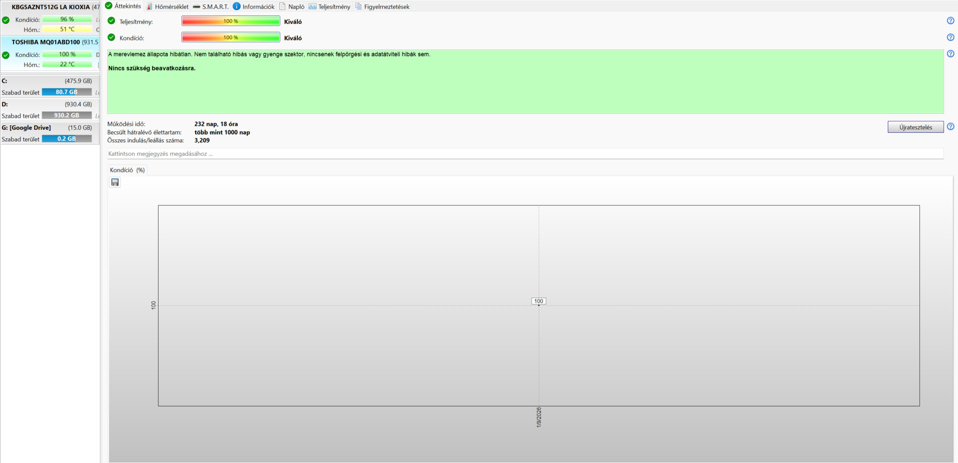 232 napot és 18 órát futott. 100/100