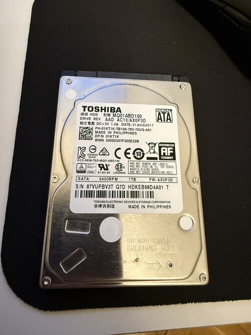 Eladó Toshiba 1 TB-os 100/100-as állapotban lévő 2,5' laptop HDD.