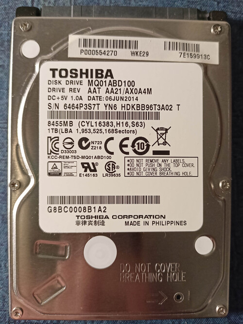Eladó a címben említett, TOSHIBA 1TB 2.5" 5400rpm SATA3 8MB laptop merevlemez (MQ01ABD100) 100/100. A termékinfóban, és a fotókon, minden adatot meg találtok róla.