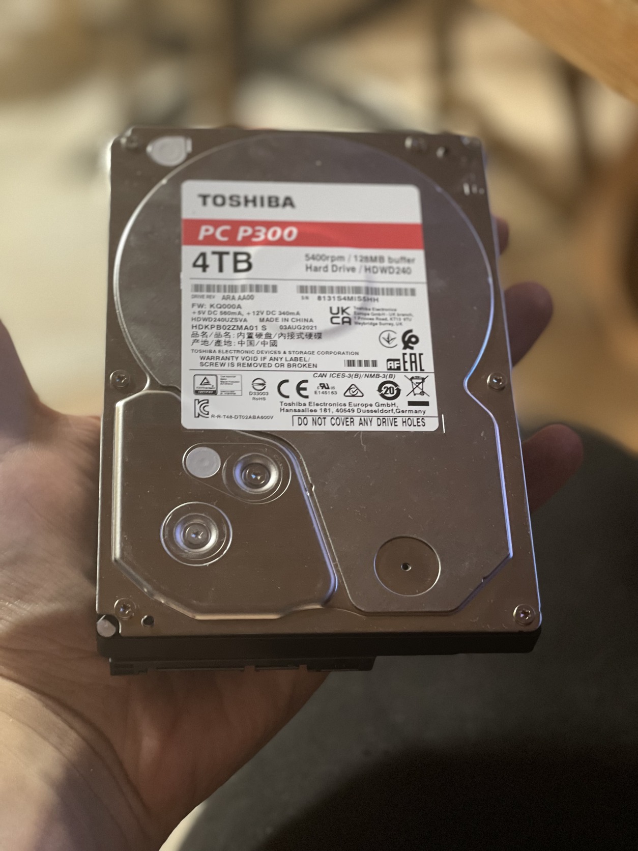 Toshiba 4Tb PC300 HDD szinte új összes futás: 32 nap