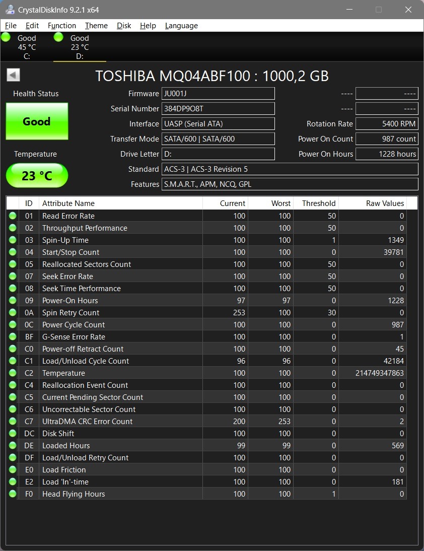 Toshiba MQ04ABF100 1TB 2,5 HDD