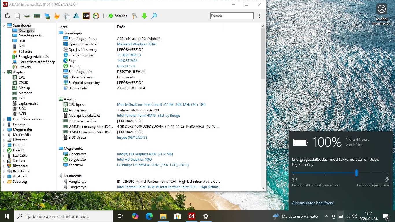 Táppal, 1,5 órás aksi, Bluetooth, USB3 Dvd író. Win10-el.