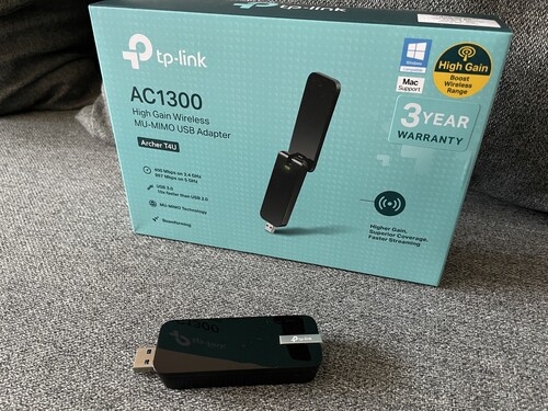 Elado tokeletes allapotban levo TP-Link AC1300 Archer T4U tipusu nagy hatotavolsagu USB-s WiFi adapter. A termek 2020.09.21-en lett vasarolva MediaMarktban 3 ev garanciaval. Dobozaban, minden tartozekaval es szamlaval.