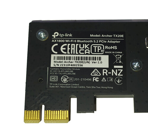 TP-Link Archer TX20E Wifi 6 + Bluetooth 5.2 kártya PCI-E / 1800Mbps