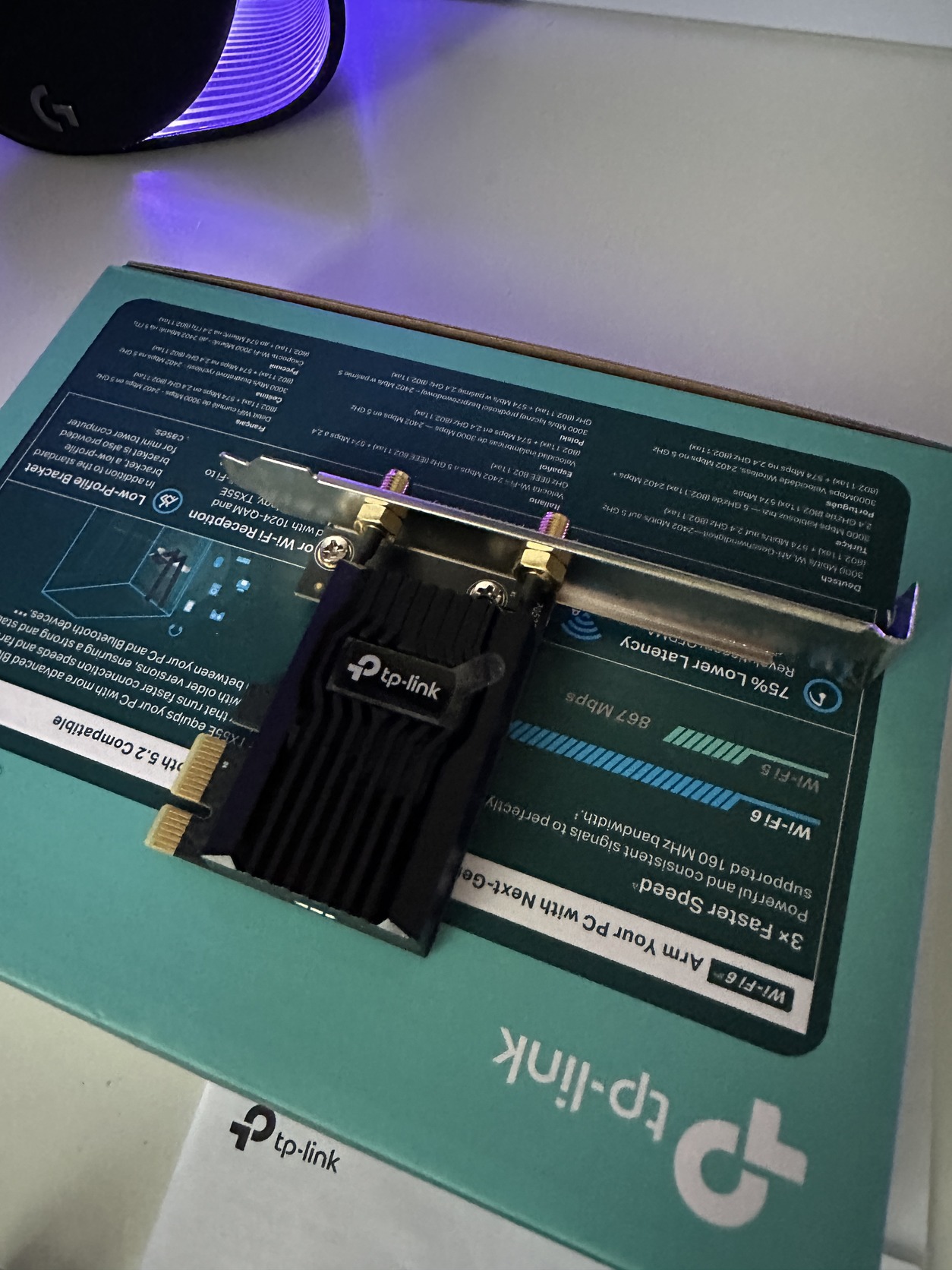 Eladó a képeken látható használt, hibátlan TP-Link Archer TX55E dobozában összes tartozékával.