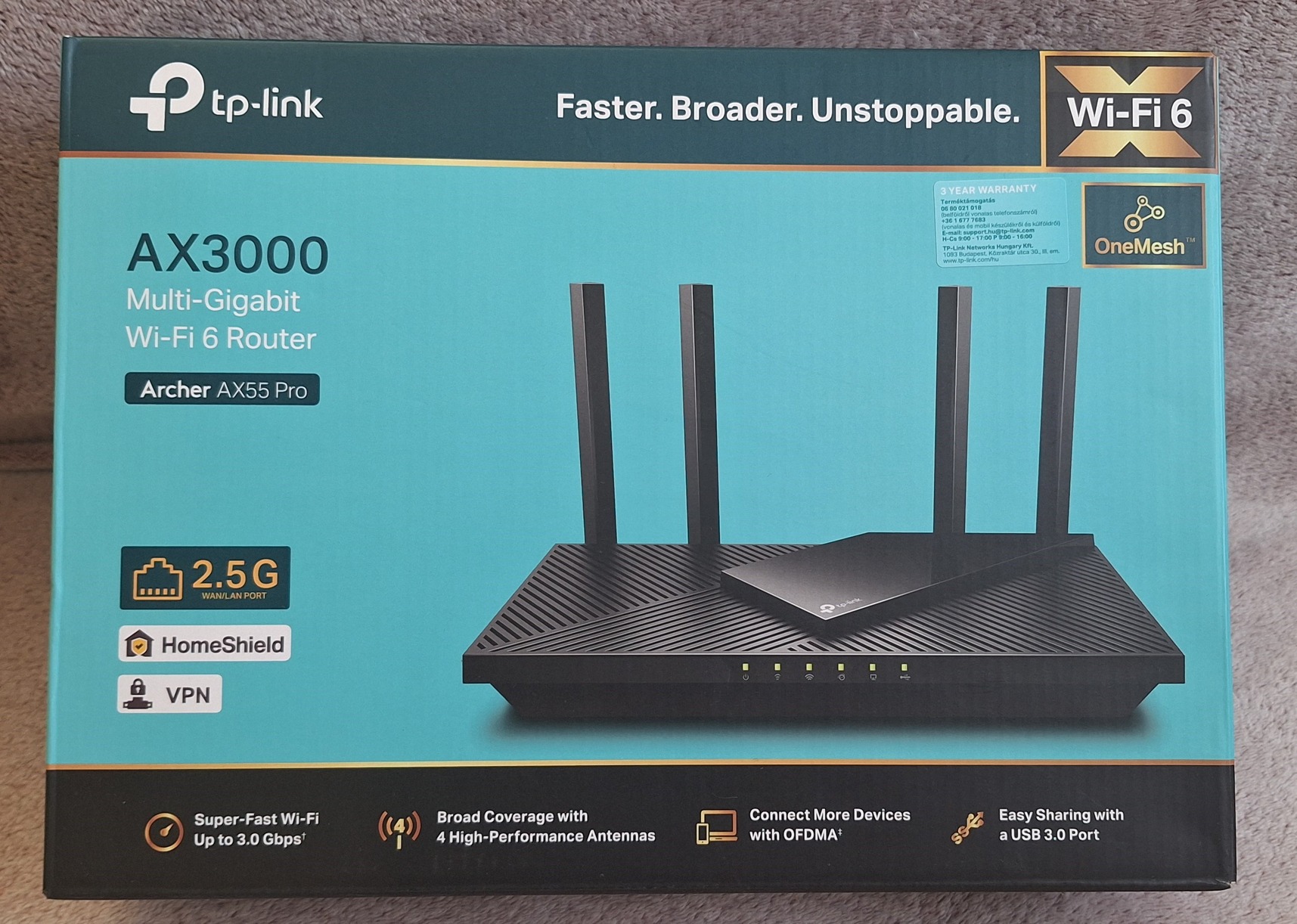 Eladó szép állapotú, 2025. januári vásárlású Tp-Link AX3000 Wi-Fi6 OneMesh router.
