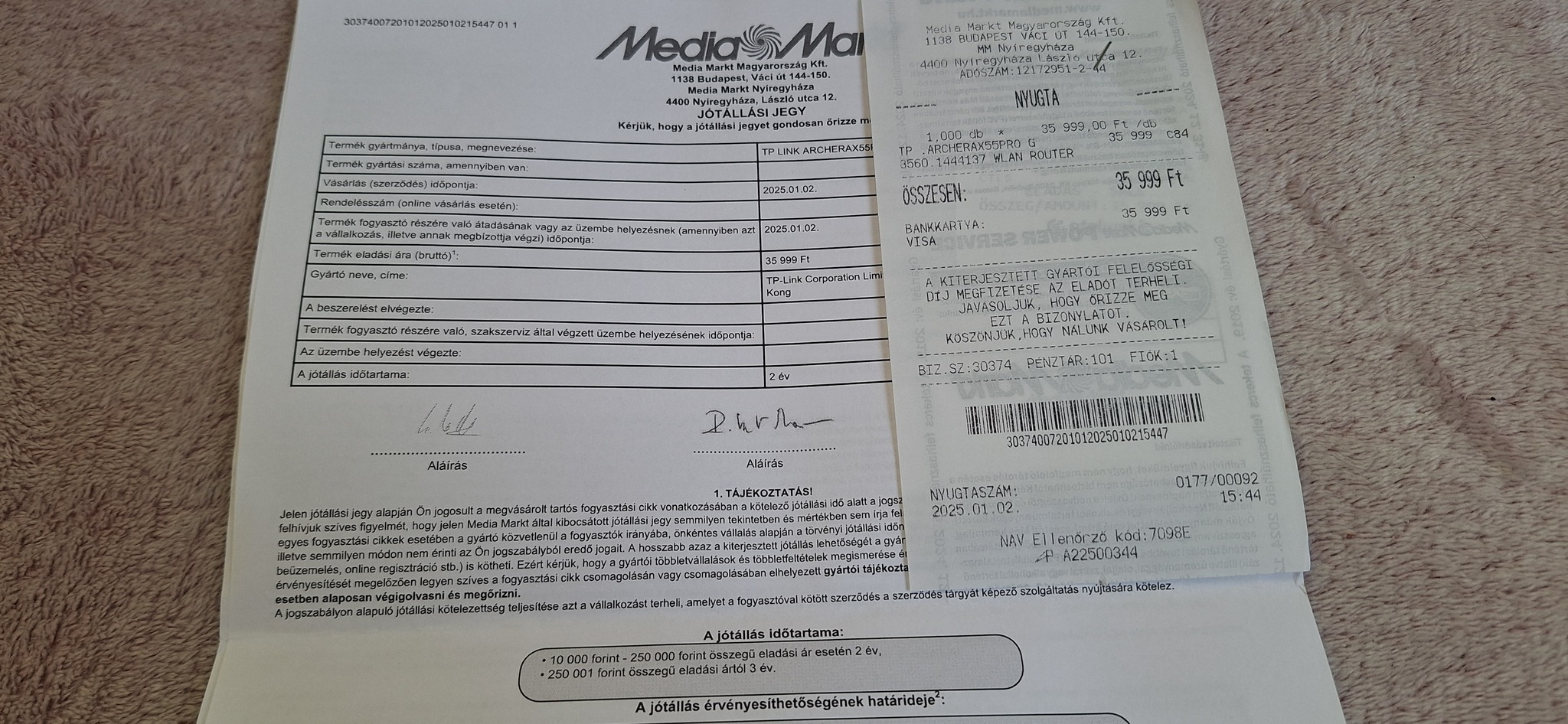 Személyesen Nyíregyházán vehető át.