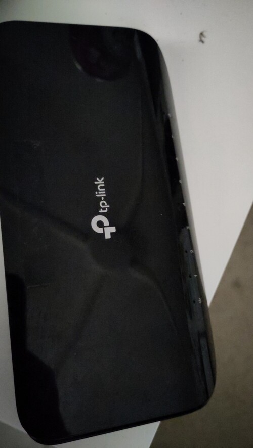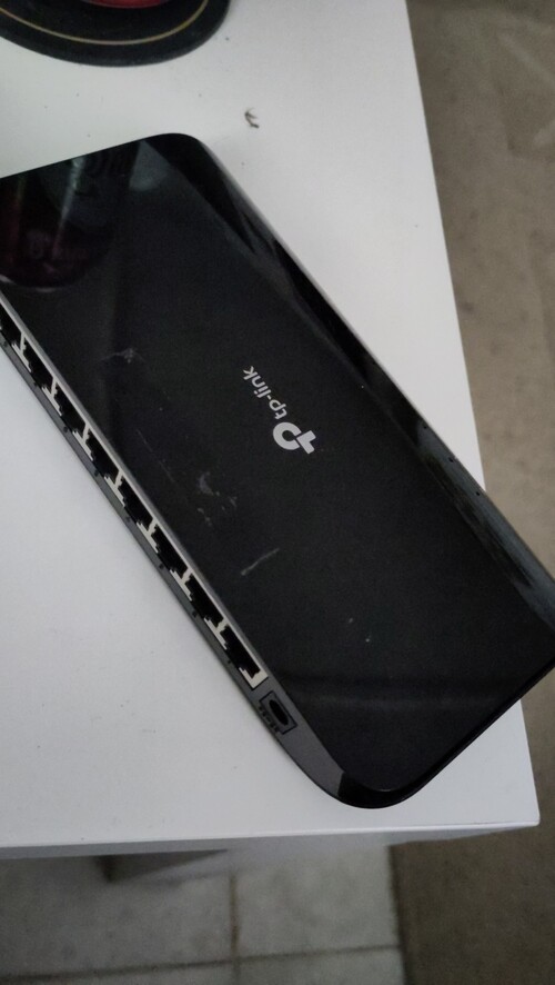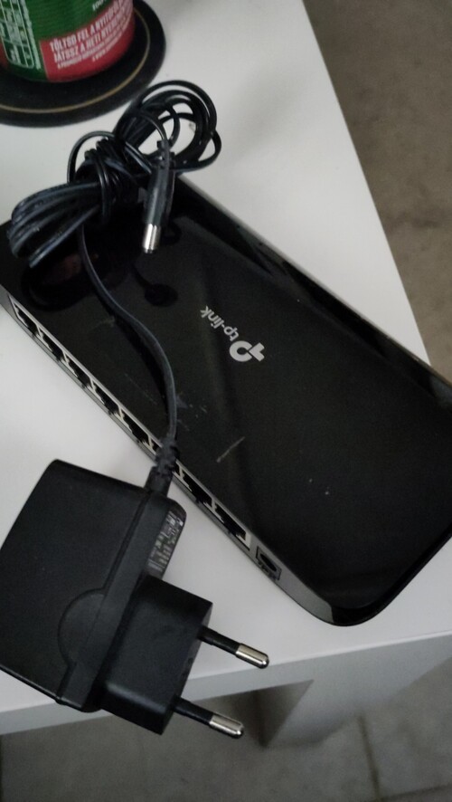 Eladó a képeken látható TP-Link TL-SG1008D Switch. Felületi karcok vannak rajta, valamint egy ragasztó nyoma látható a tetején.