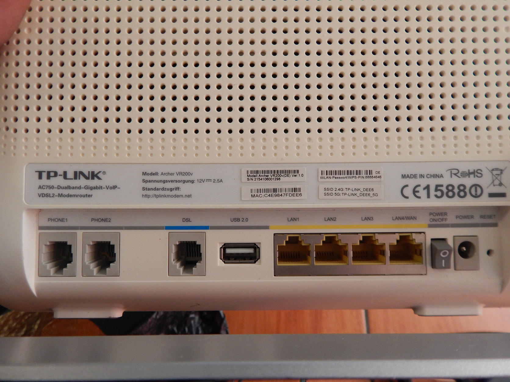 Eladó a címben említett router. A hátulját megsütötte a nap, megsárgult.
