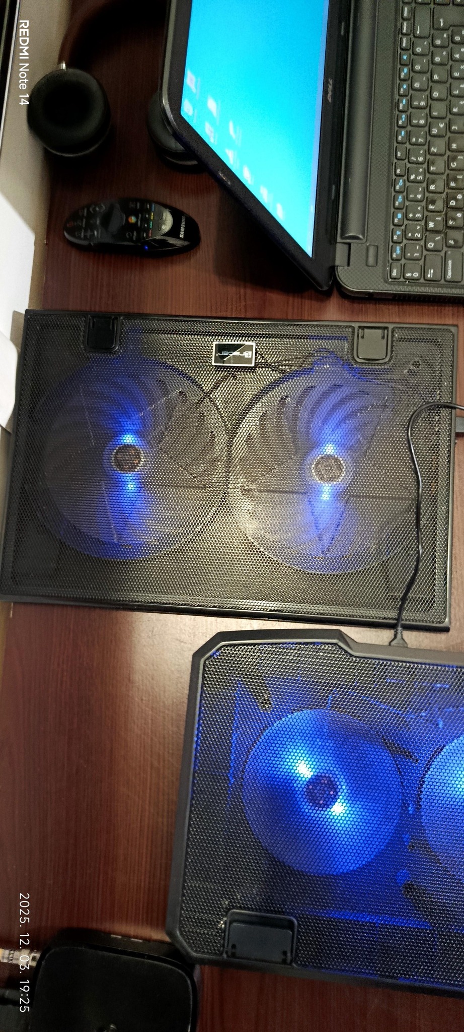 Eladó a képeken látható laptop hűtők, mi már nem használjuk. Kék ledes nagy dupla ventilátor, laptop támasszal, dönthető, új USB kábel!