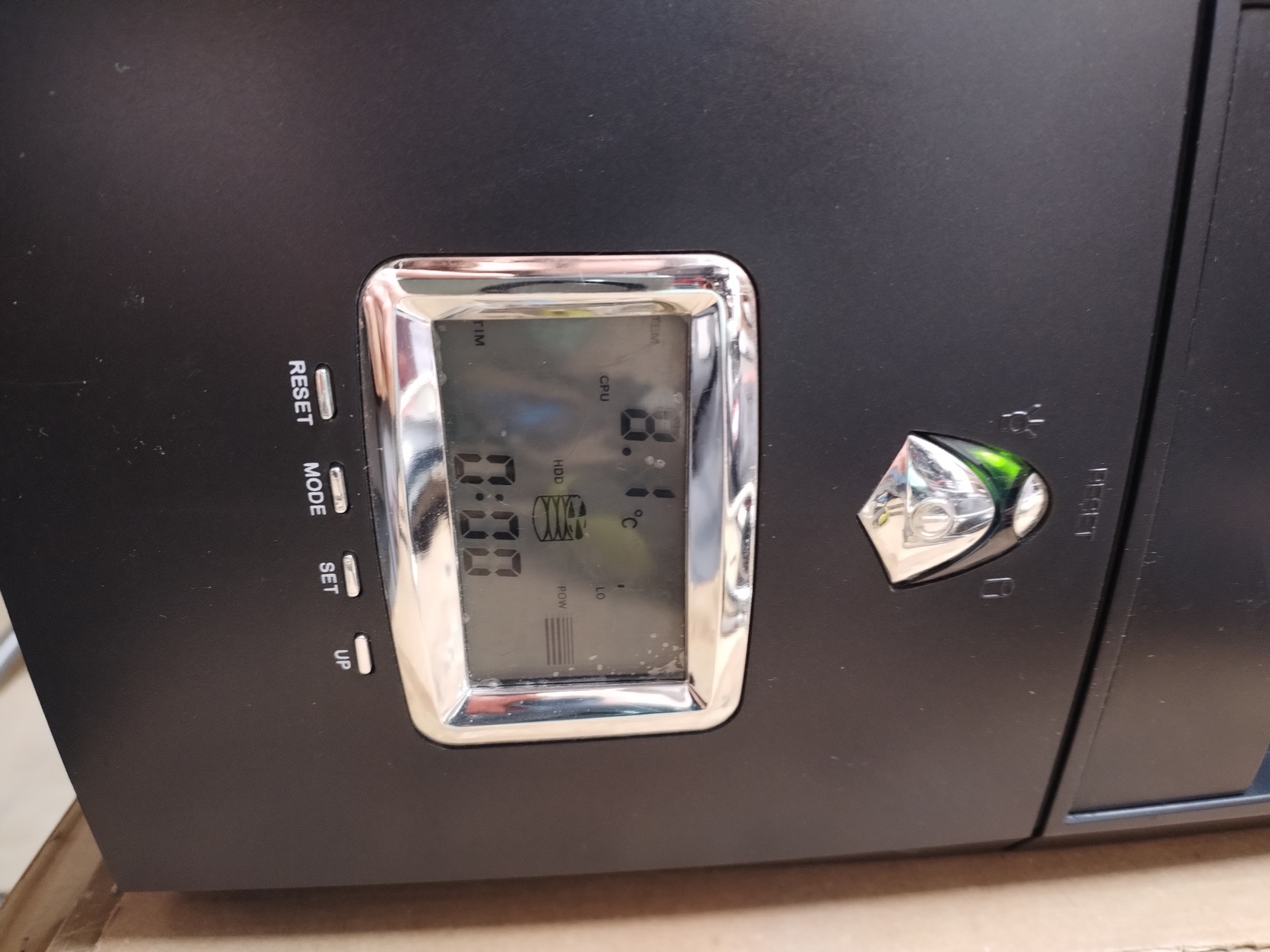 A kijelző venti sebességet, HDD hőmérsékletet, géphasználati időt és néhány egyéb dolgot mutat.