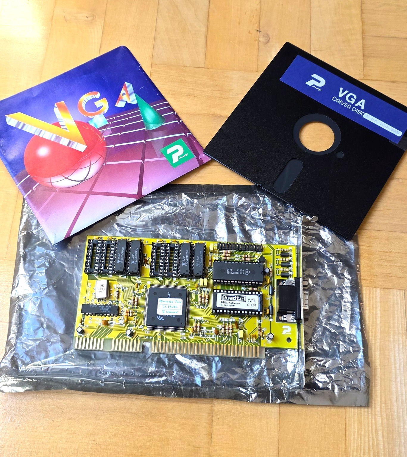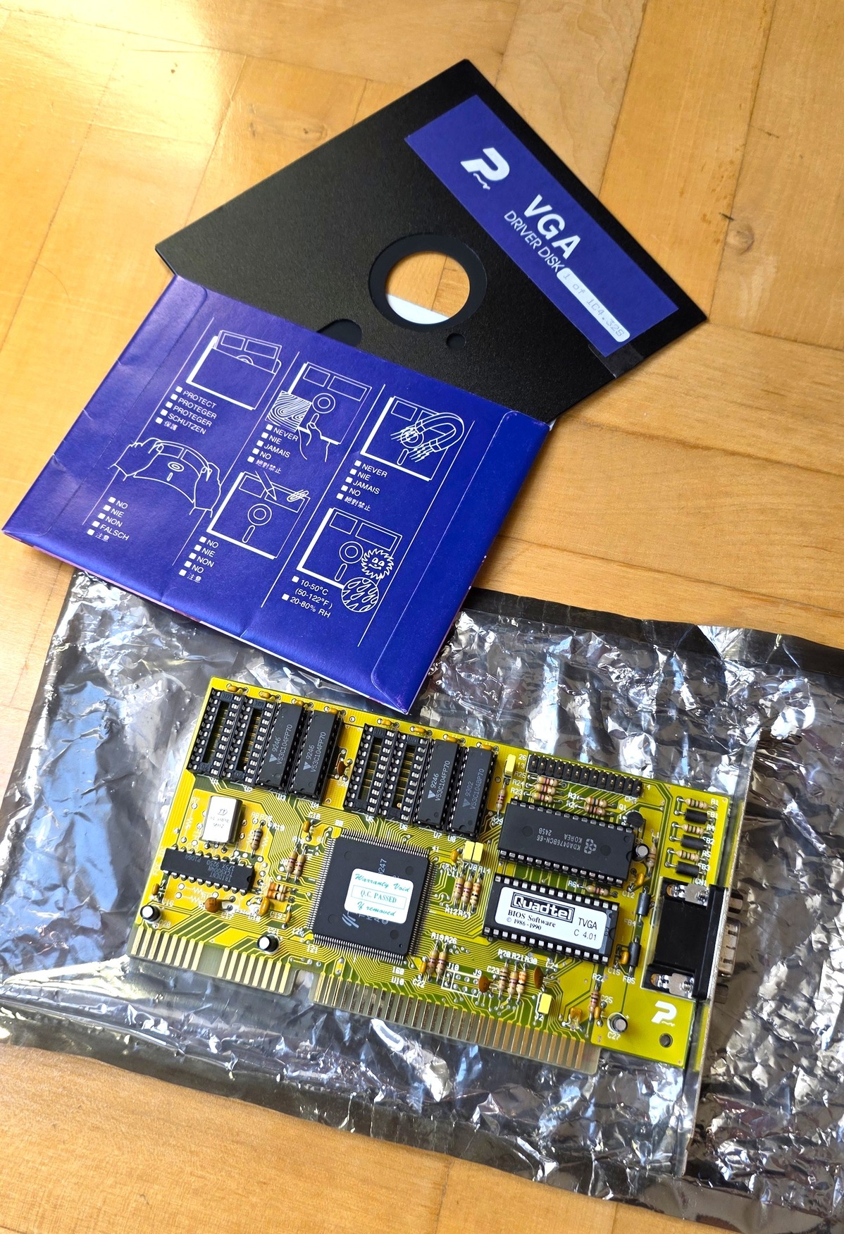 Eladó egy gyönyörű állapotú Trident TVGA 512Kb ISA videókártya a gyári telepítő nagy floppyval!
