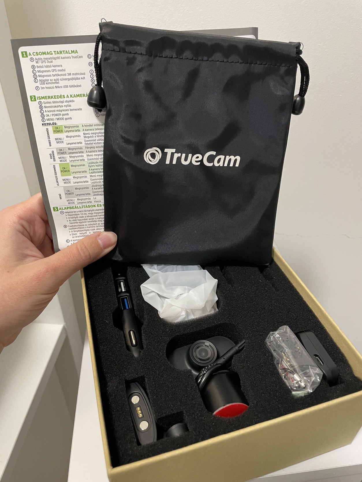 Eladó TRUECAM M7 GPS Dual új fedélzeti autós kamera. Csak a doboza volt bontva, a kamera nem volt kicsomagolva, sem használva.