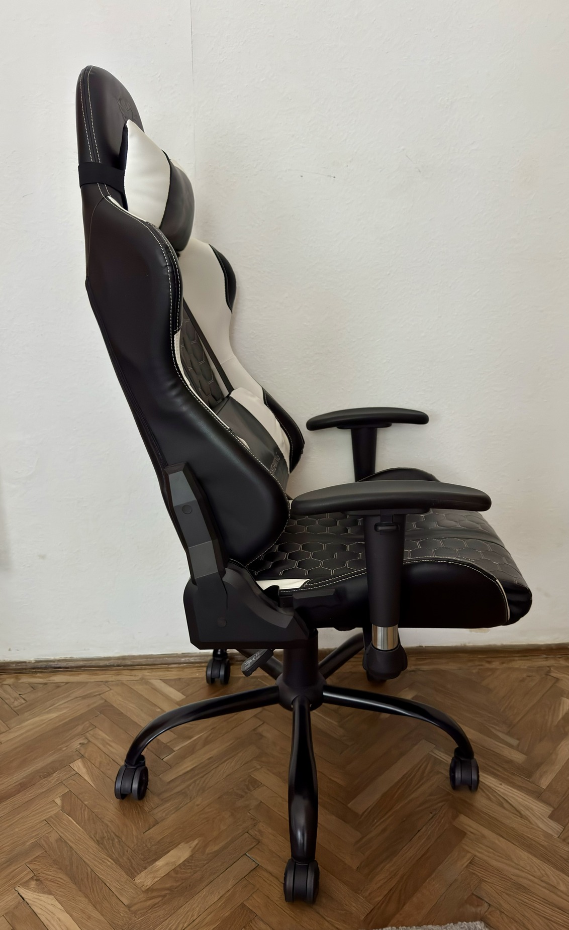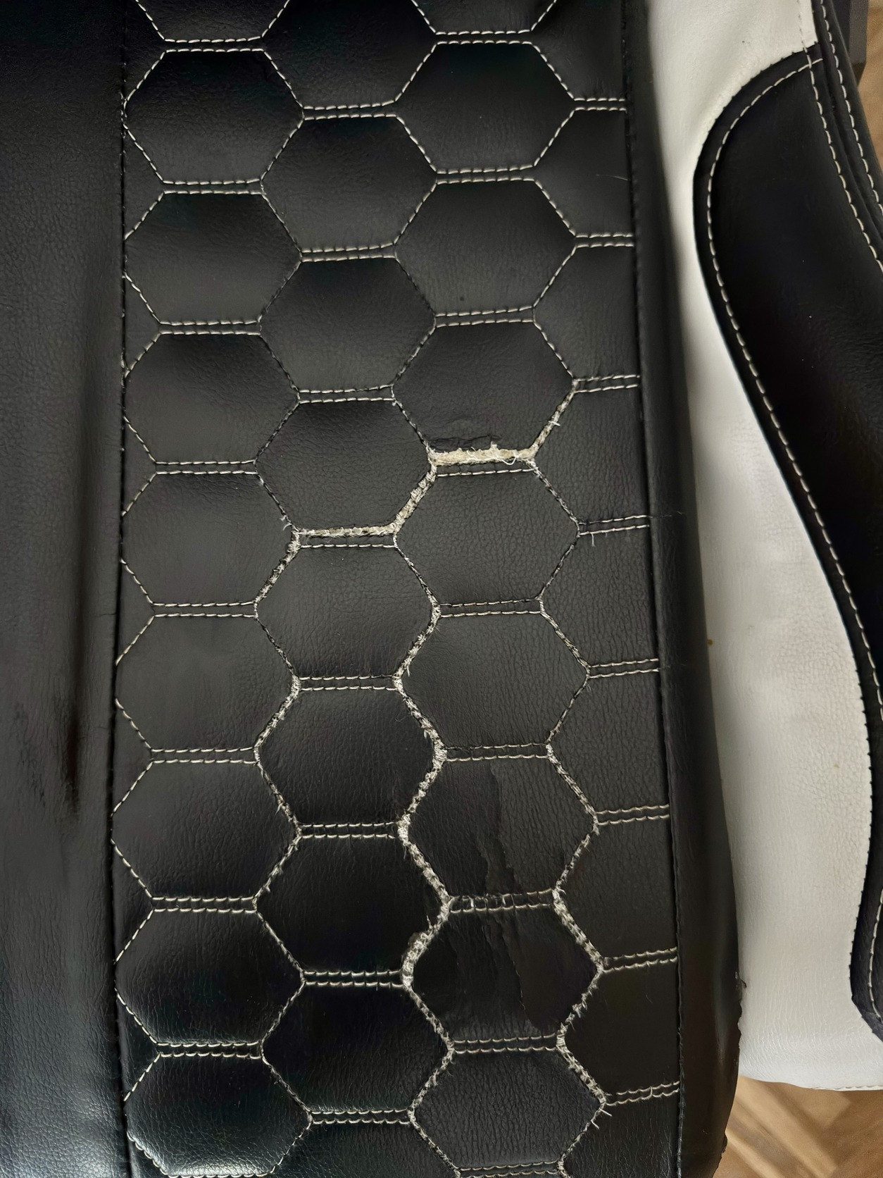 A szék teljesen használható és kényelmes, de a huzaton használatból eredő kopás látható.
