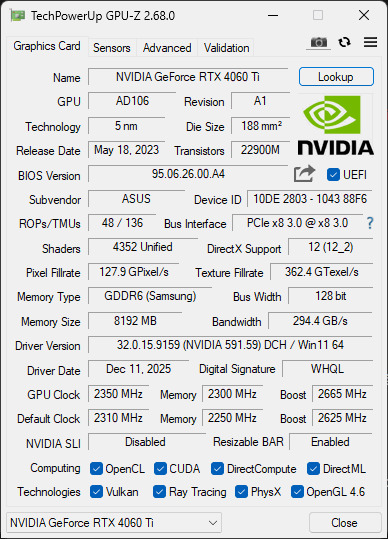 TUF RTX 4060 TI 8GB csere