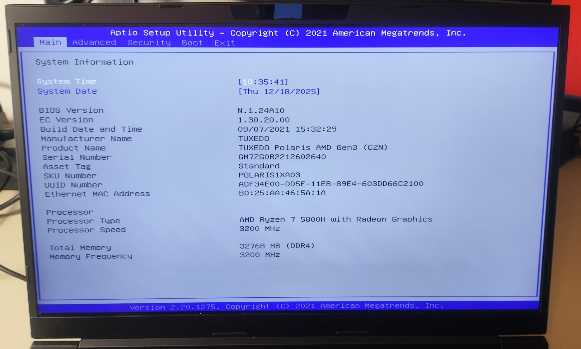 Az eredeti TuxedoOS (linux) van telepítve rá, de a windows driverek rajta vannak a lemezen
