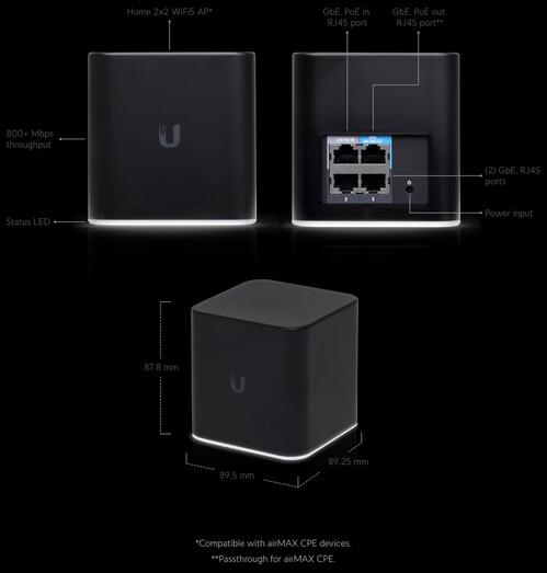 Ubiquiti AirCube AC router/AP - 2x2 AC 2,4/5GHz - 4 x GBE - 24V POE IN + passthrough