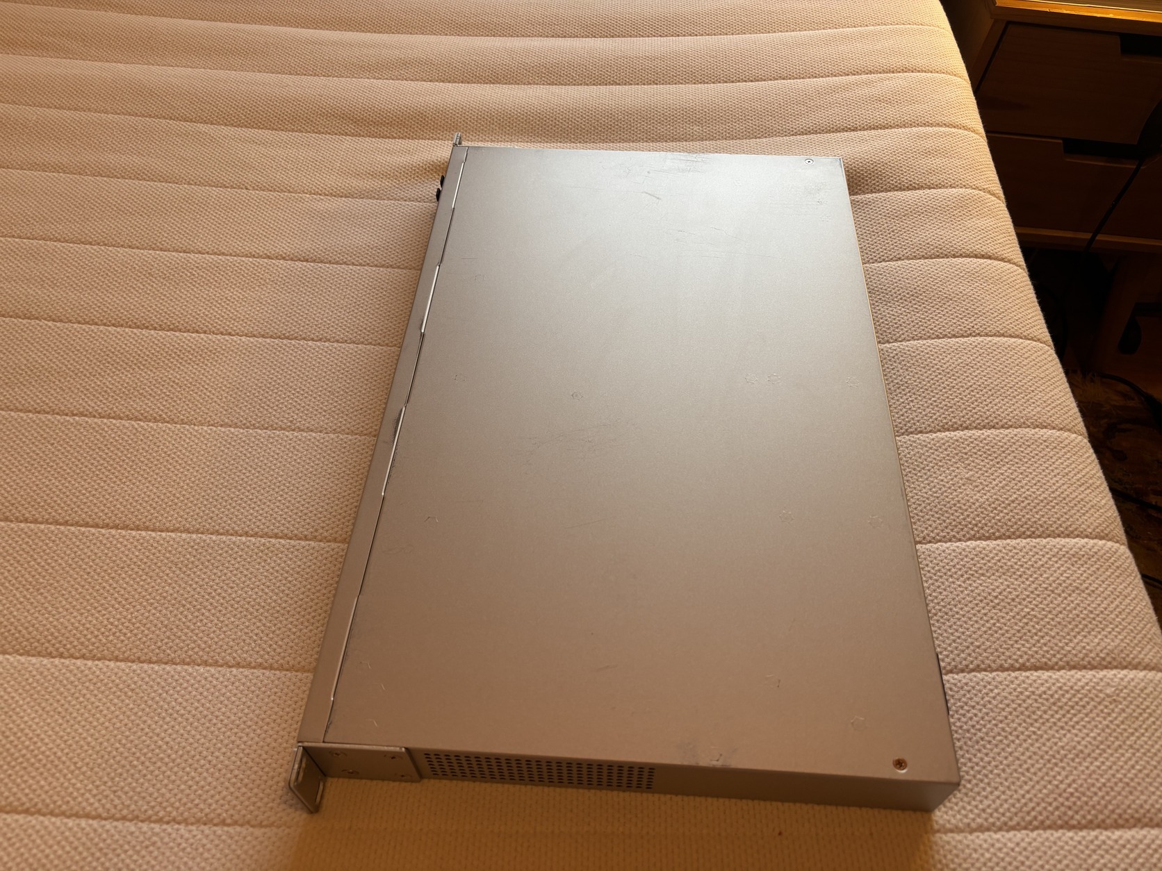 Működése kifogástalan, az alján és a tetején a rackbe való ki- és beszerelés során keletkező kisebb nyomok látszanak, ezek a fotón egészen jól láthatóak. Tápkábelével, rackfüllel