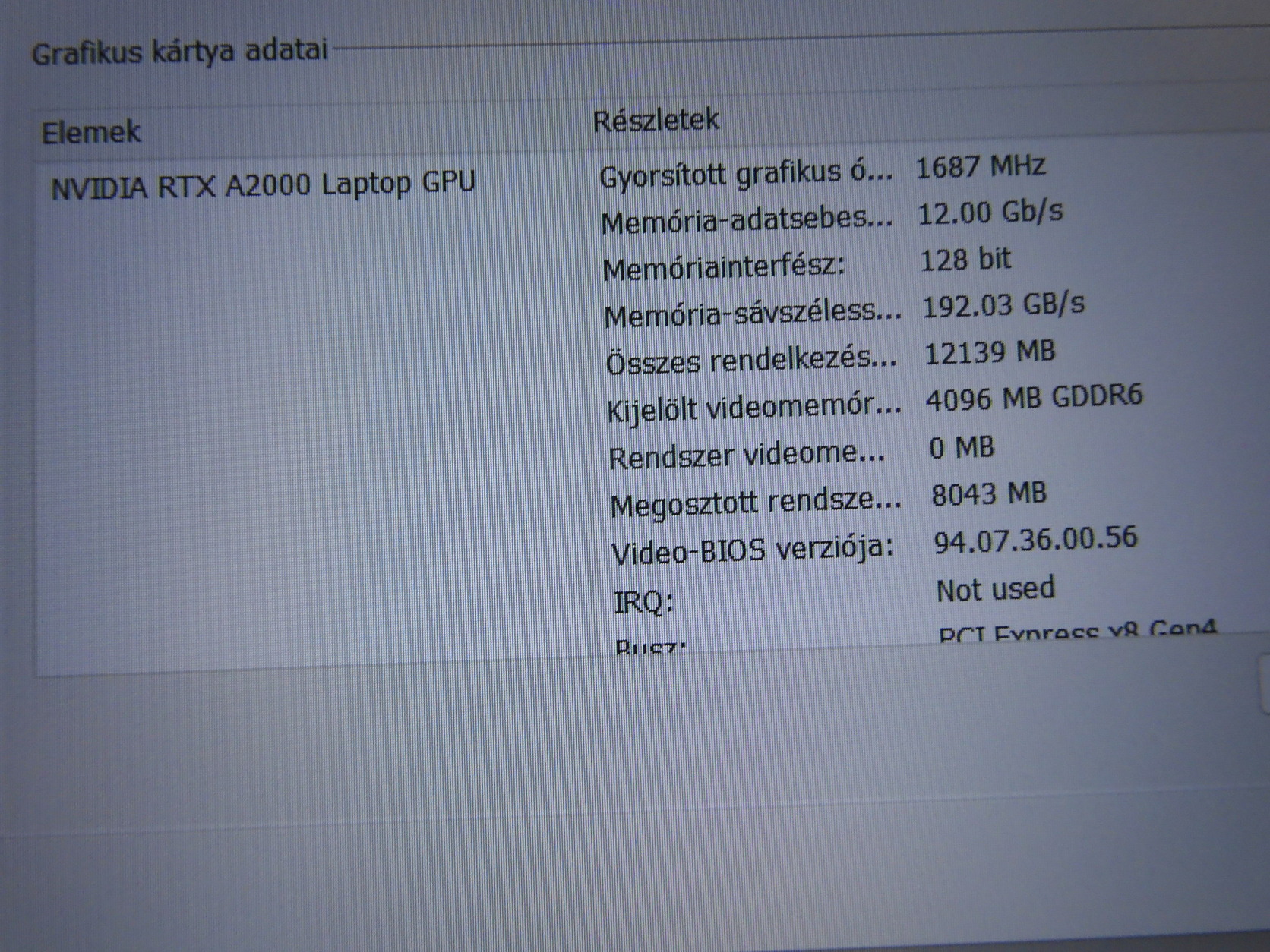 Össze rendelkezésre álló grafikus-memoria: 12Gb