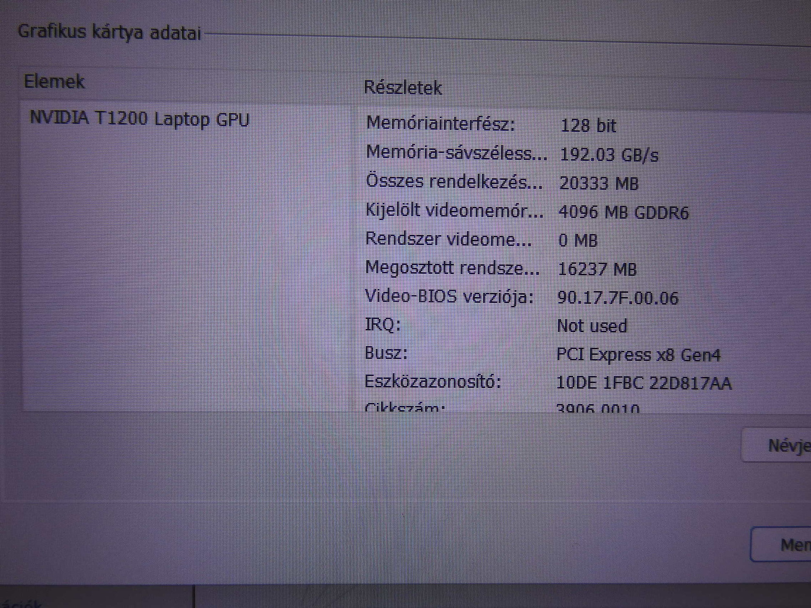 Össze rendelkezésre álló grafikus-memoria: 20Gb