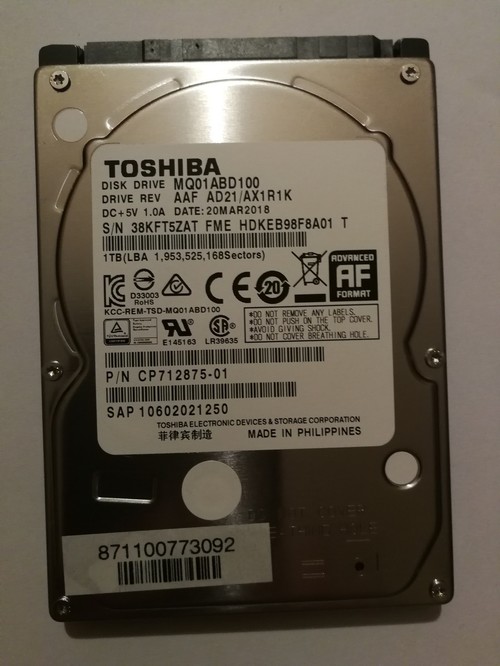 Laptoppal gyárilag érkező 1 TB-os Toshiba MQ01ABD100 típusú HDD eladó. Új, összesen kb 15 percet működött, laptop bekapcsolása ill a HD Sentinel teszt elkészítése idejére (lásd képek).