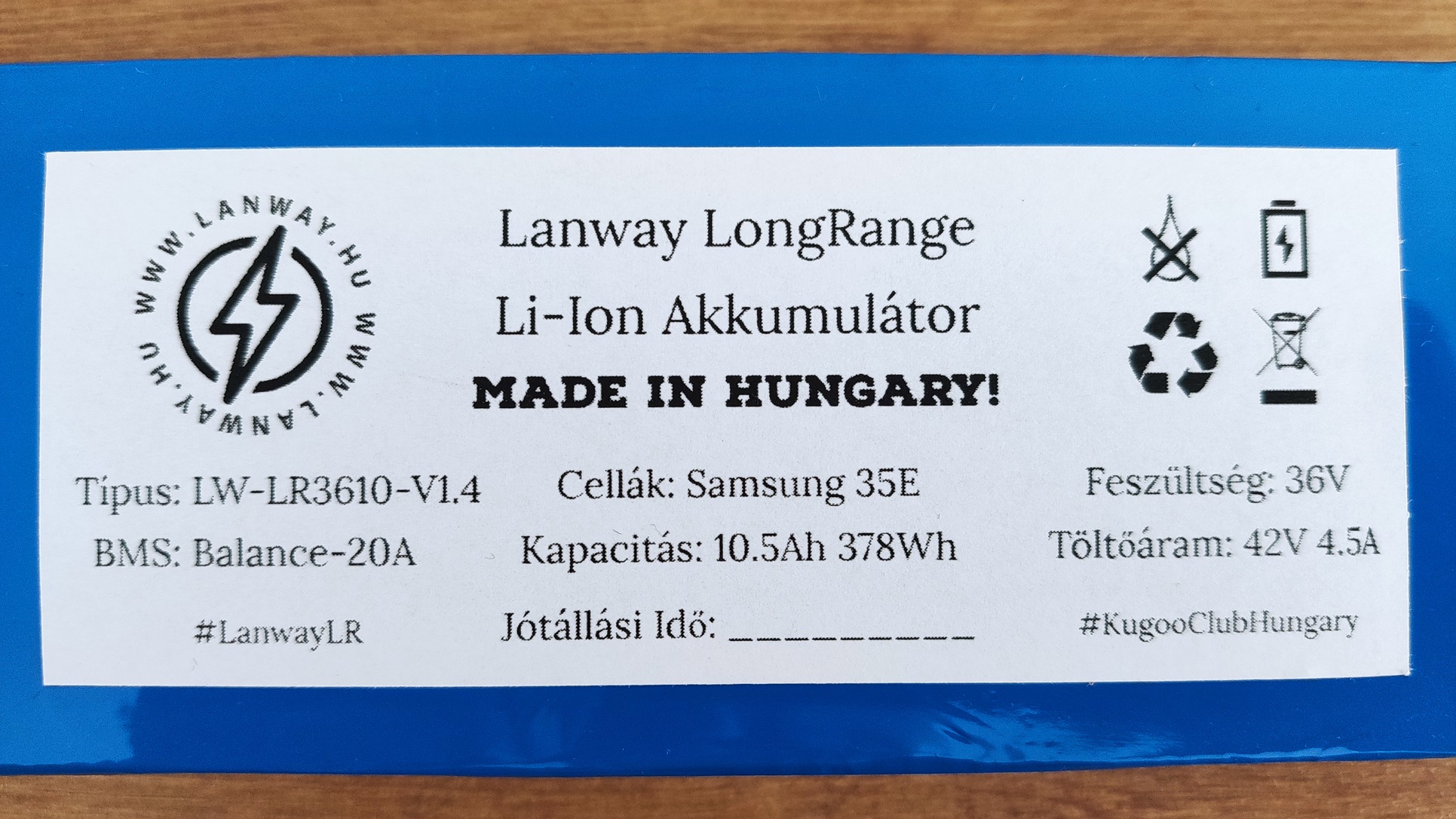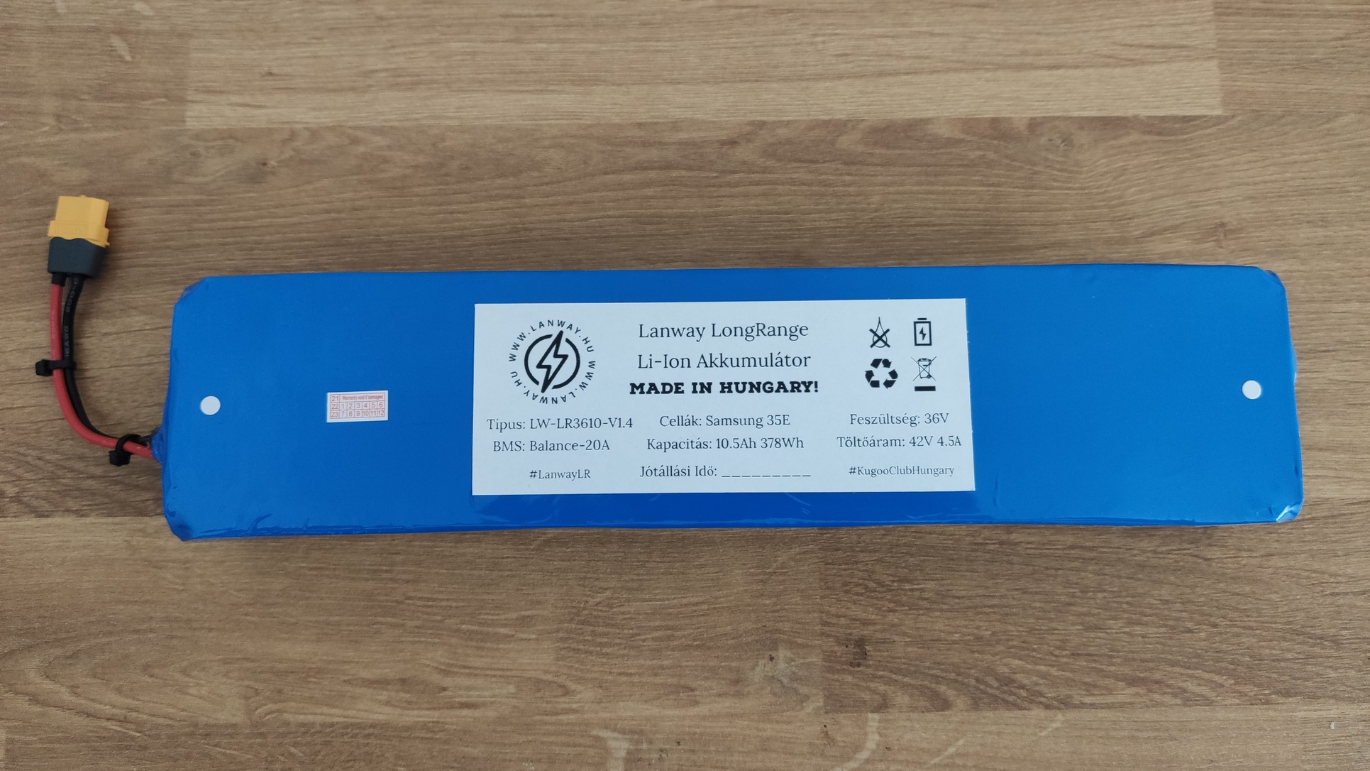ÚJ 36V 10.5Ah Lanway LongRange Kugoo S1 Nagyhatótávú Elektromos Roller Li-Ion Akkumulátor Akku