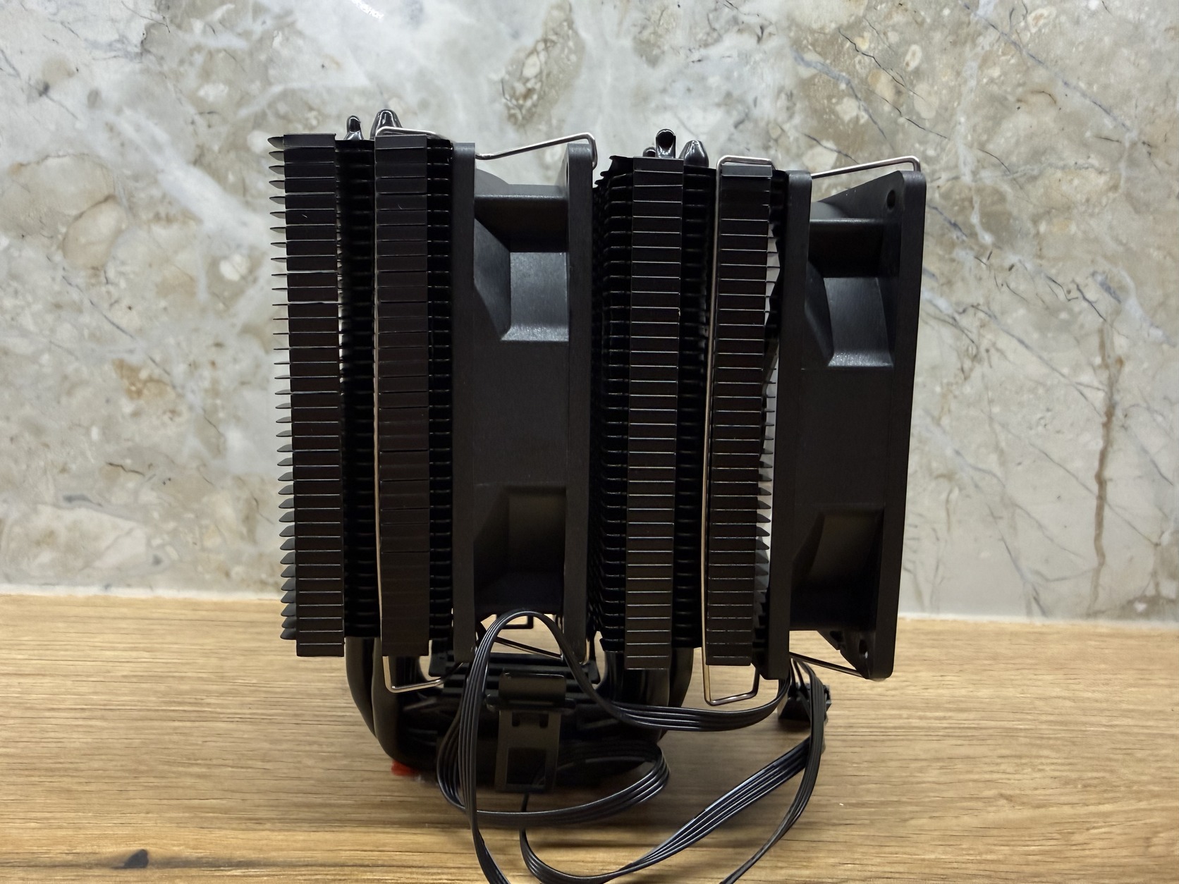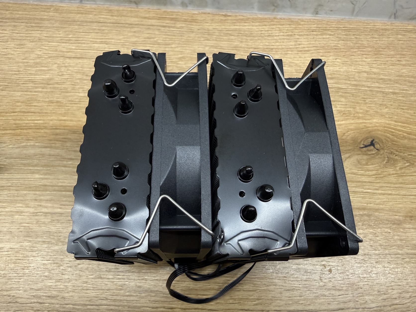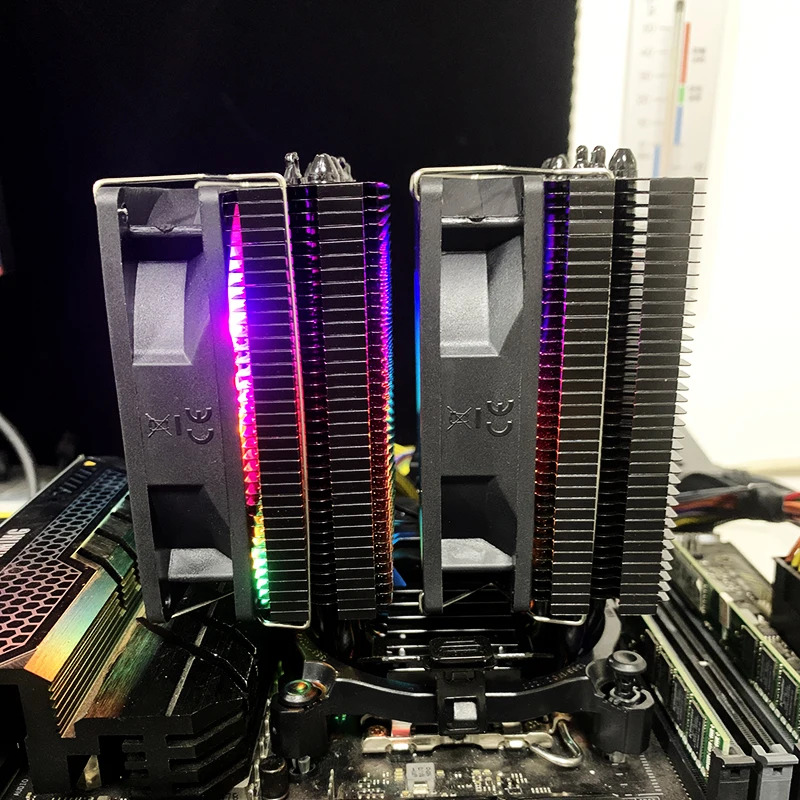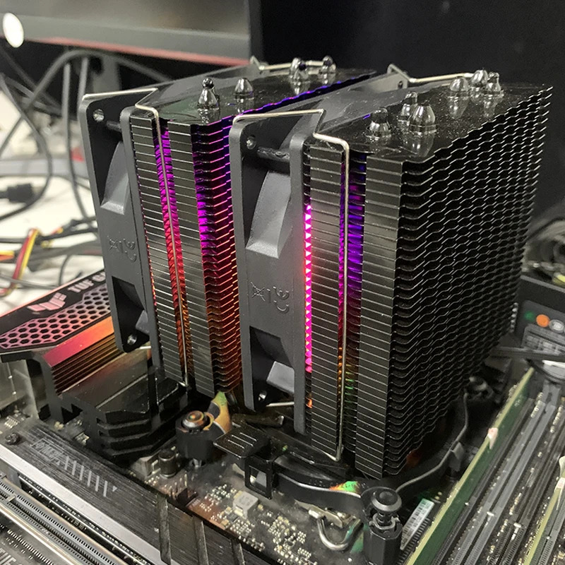 Változott projekt nyomán ár alatt eladó kalandból vásárolt, meglepően jó minőségű kínai 6 hőcsöves dupla tornyos hűtő, két 90mm-es 4pin-es RGB ventivel. Első képek oldaláról lopottak, utóbbiak sajátjaim - beépítve nem volt. Bolt oldala itt.