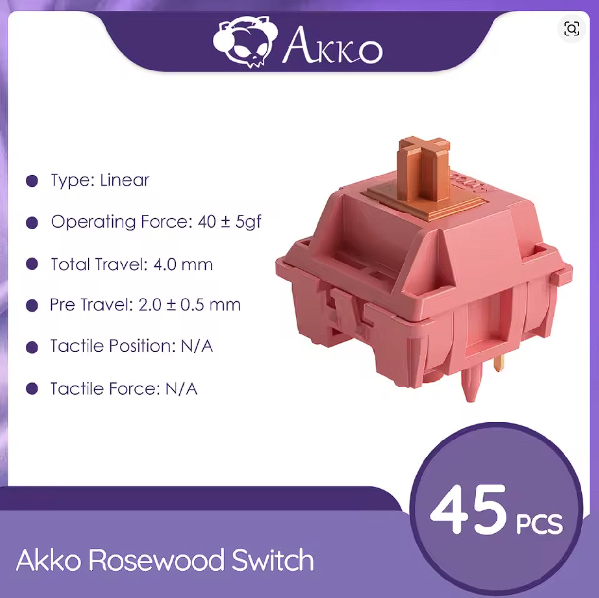 Eladó 45 db vadonatúj Akko Rosewood lineáris switch (építésből maradt ki 1 csomag, sosem látott boardot).