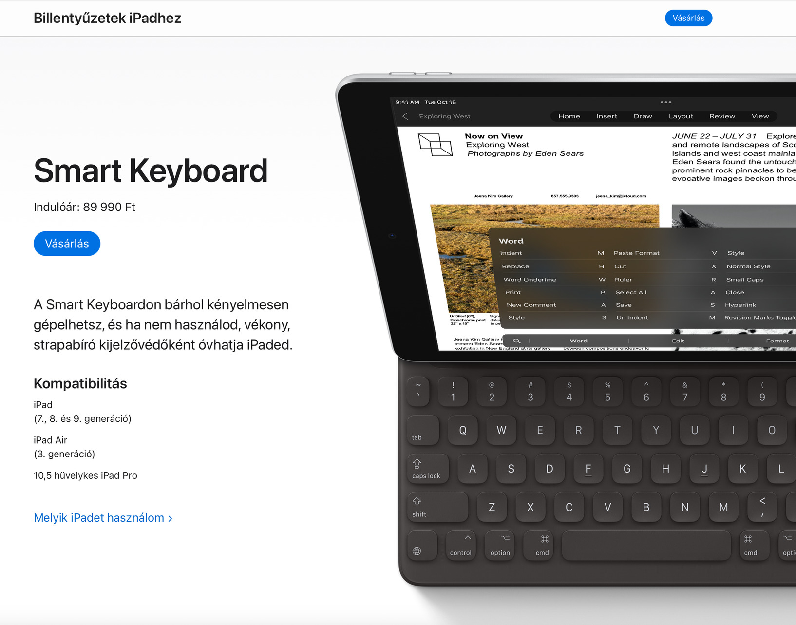 - Smart Keyboard 7 8 9 generációs iPad -hoz és 3. generációs iPad Air-hoz és 10,5’’ kijelzős iPad Pro-hoz!