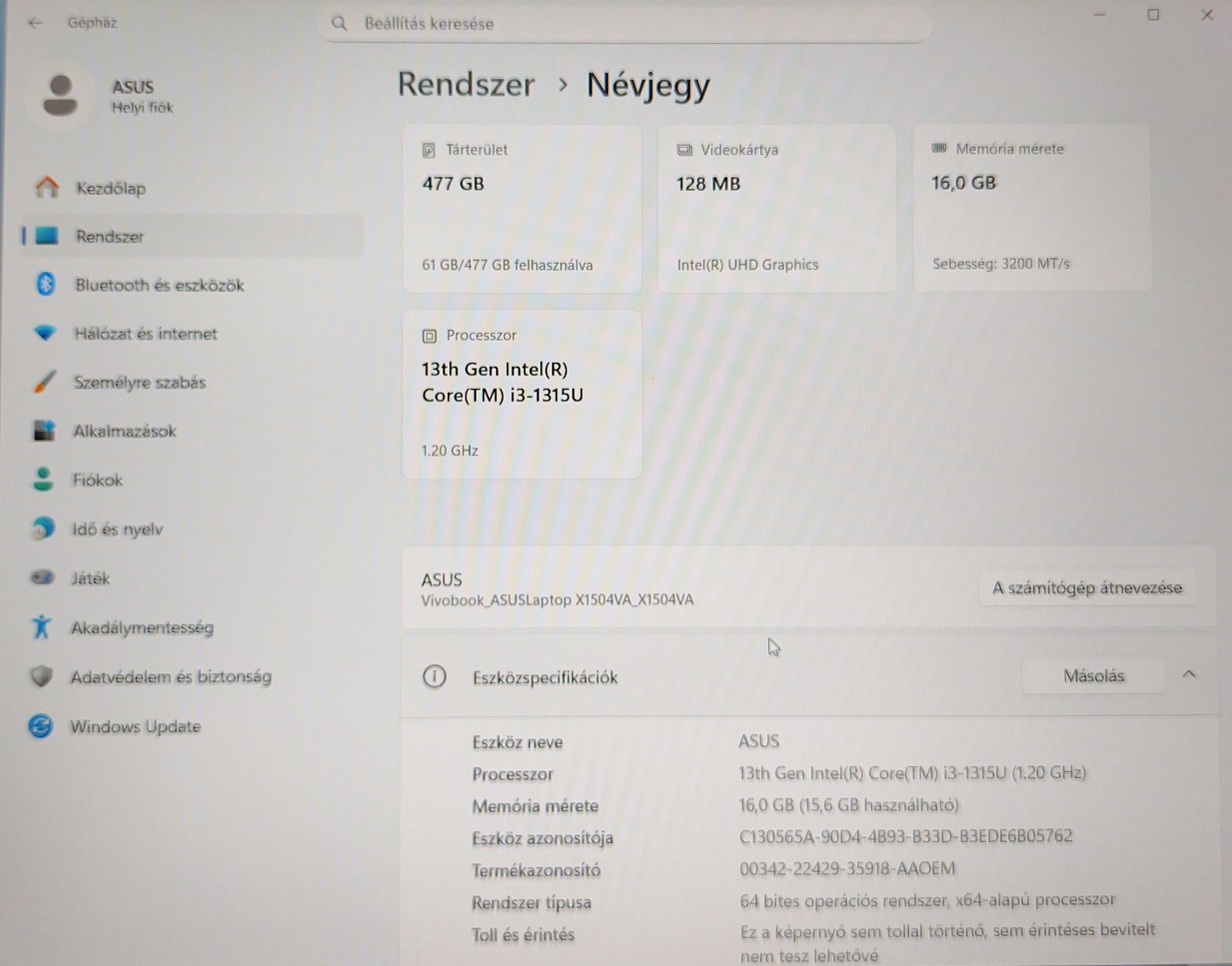 Intel Core i3 processzor.Windows 11 Home.15.6 kijelző.
