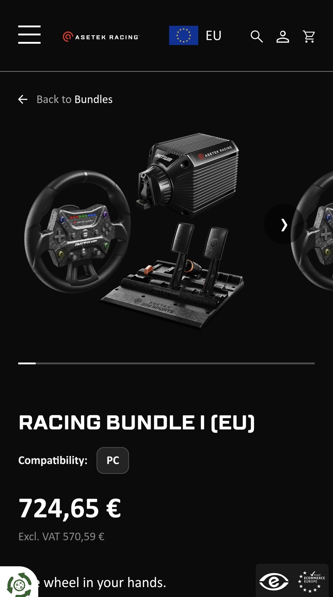 Eladó egy teljesen új, bontatlan, garanciális Asetek Initium Racing Bundle I szimulátor kormány szett. (Initium Direct Drive bázis 5,5 Nm, Initium kormány perec és Initium pedál.)