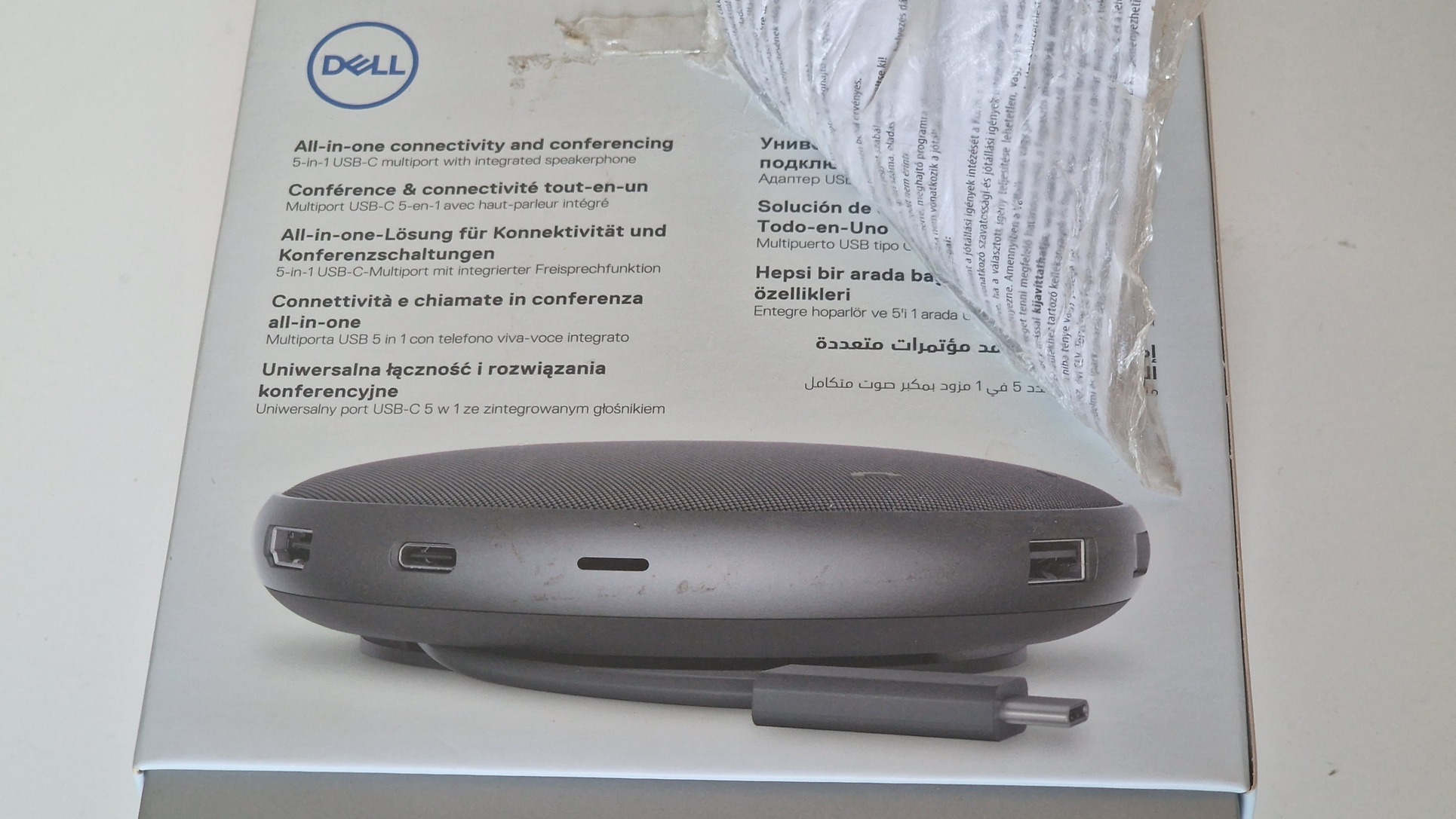 Új, bontatlan Dell USB-C adapter, beépített kihangosítóval .