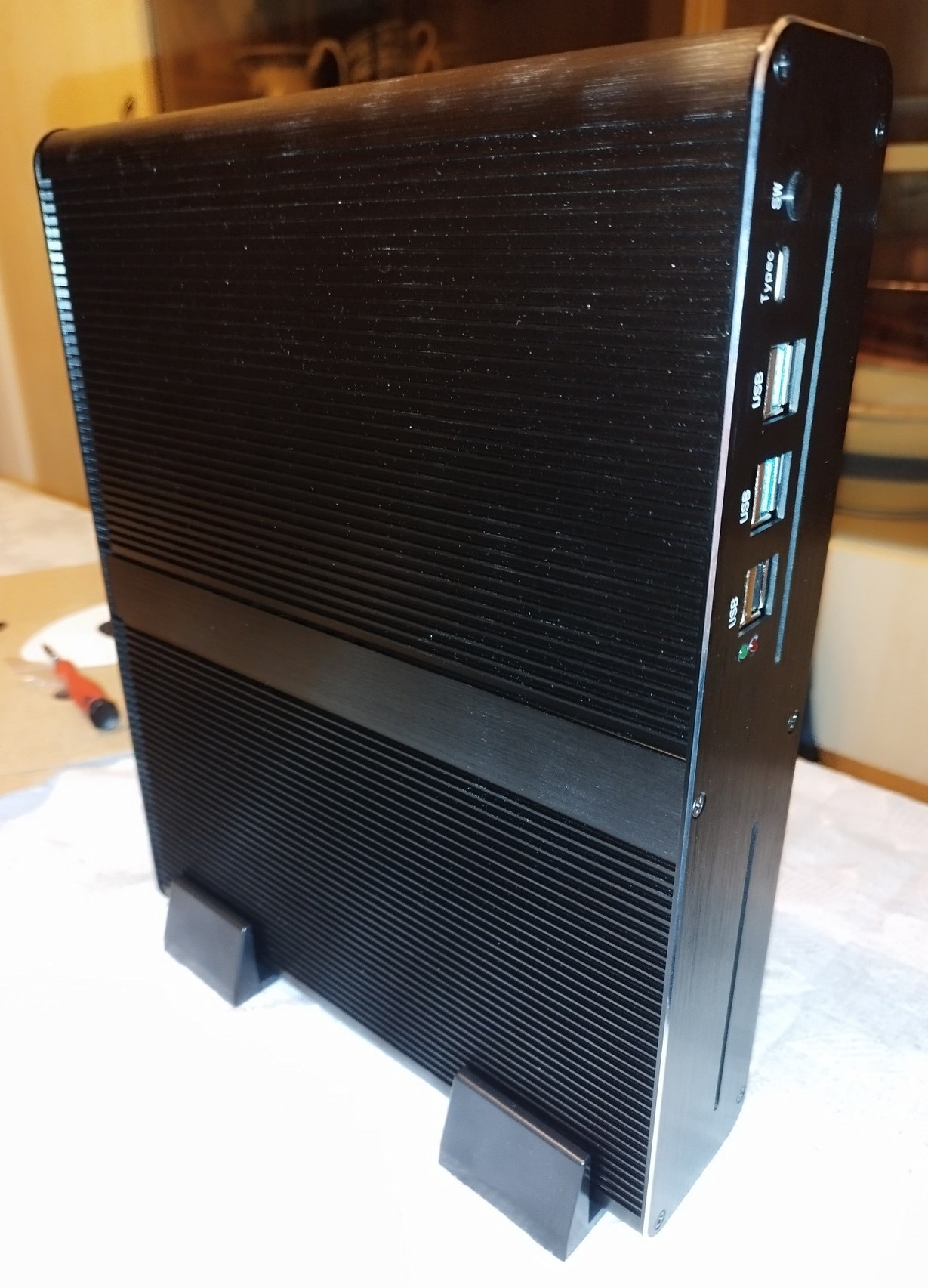 Fém ház, kis méret és tömeg, gumitalpakkal, de van hozzá két láb is függőleges használathoz.