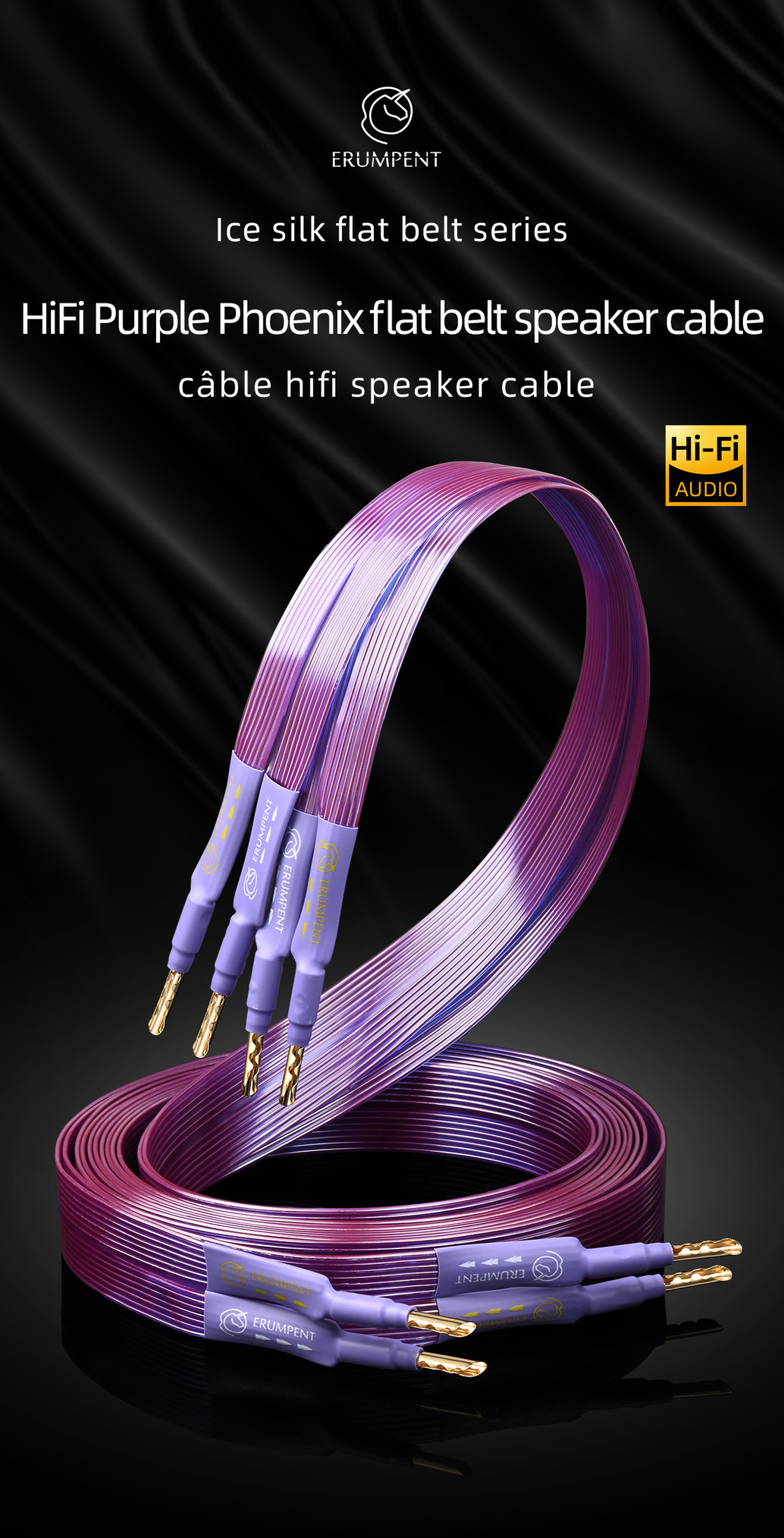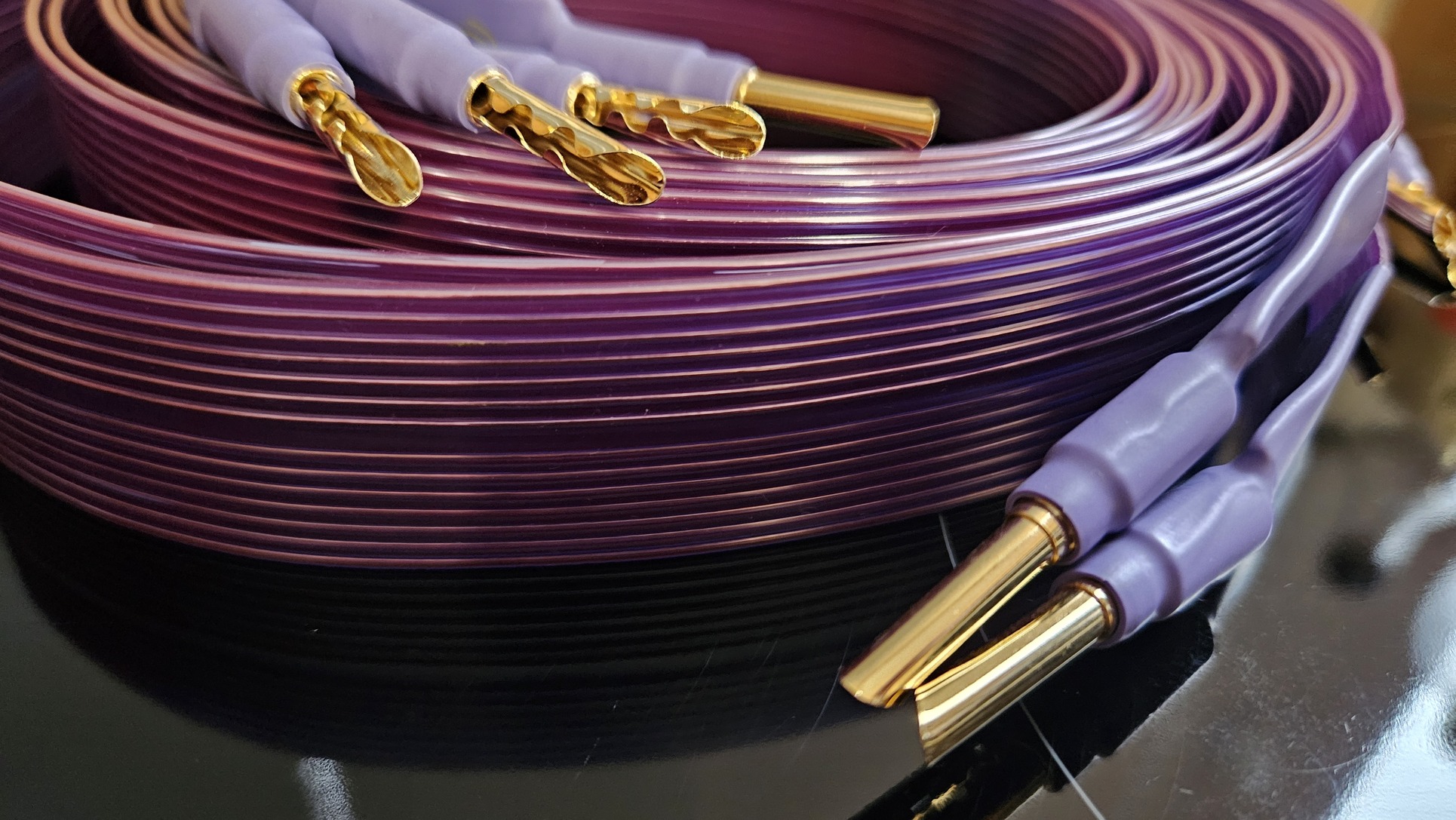 Eladó a képen látható új, 2x2.5m HiFi hangfalkábel aranyozott banándugókkal.