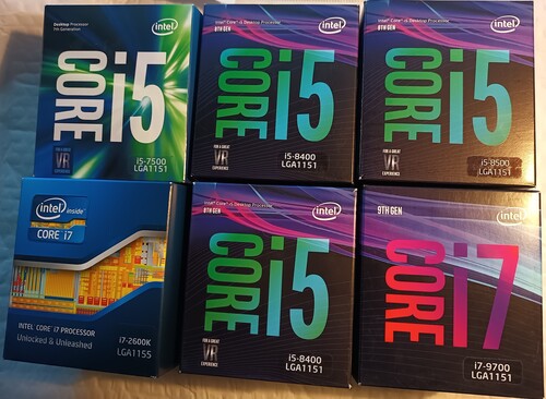 a dobozok:i7-2600k s1155 ebben a kis füzet is ott vani7-9700 s1151i5-7500 s1151