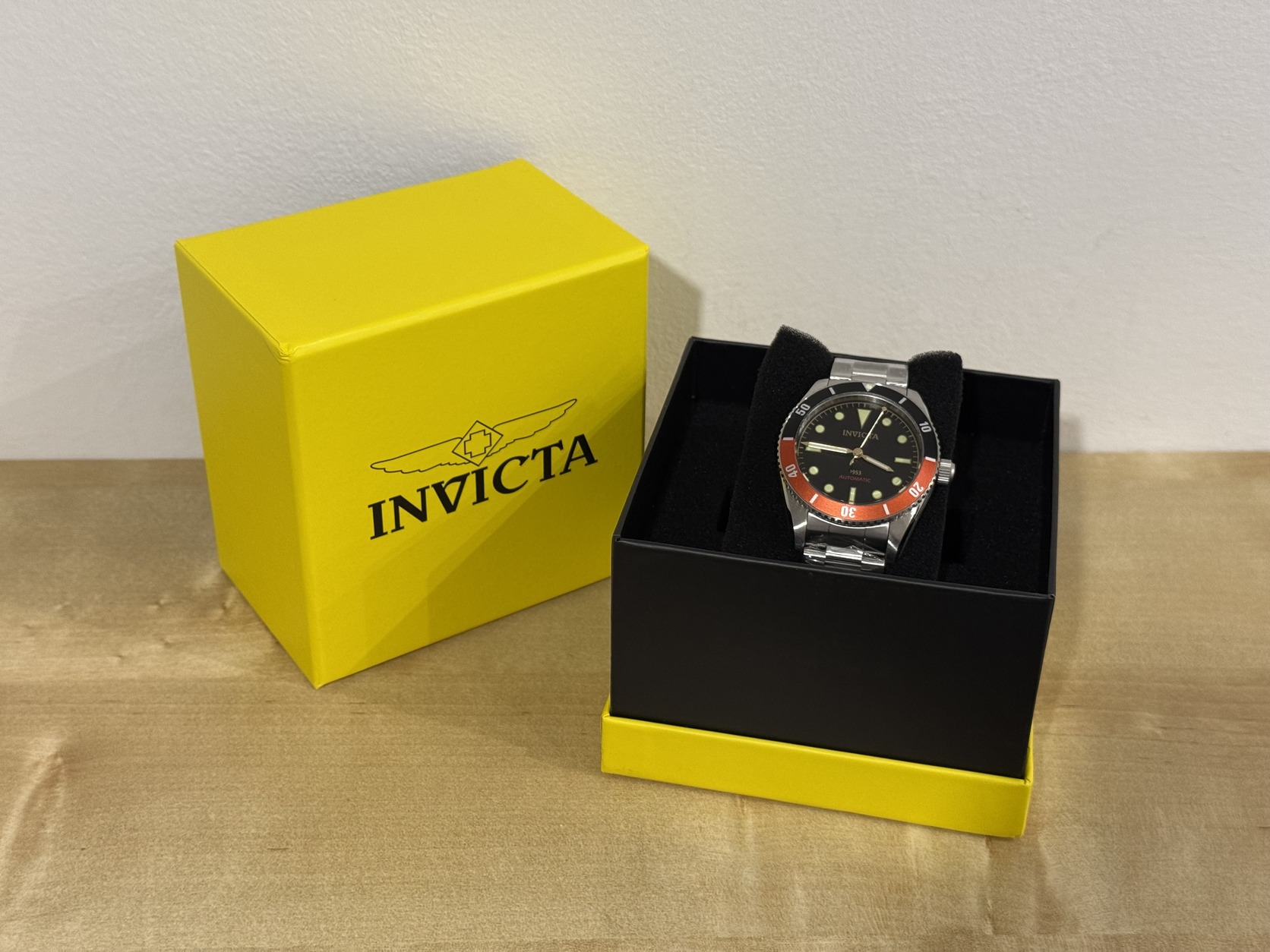 Vadonatúj, fóliás, Invicta Pro Diver automata búvár karóra. 40 mm tokszélesség, Oyster szíj, klasszikus búvár számlap, nagy lume, 100% rozsdamentes acél tok és szíj, Seiko, NH34A automata, kézzel is húzható szerkezet, dátum nélküli letisztult számlapos változat.